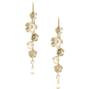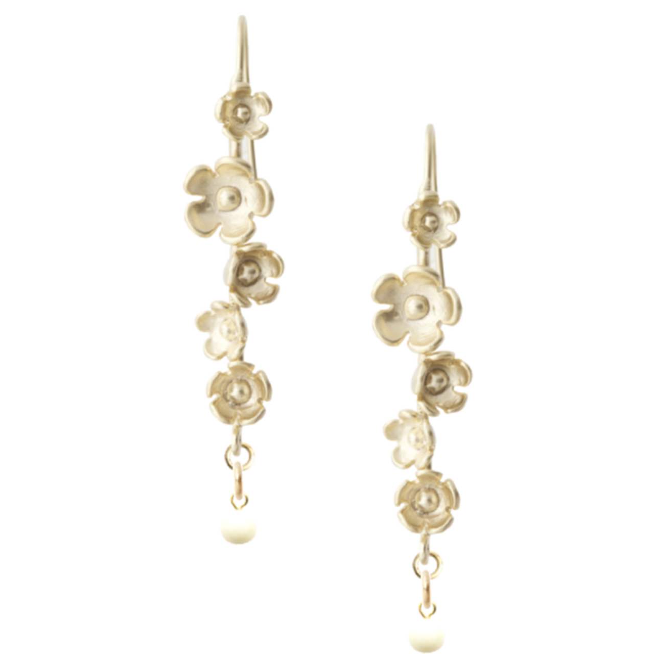 ■ゴールピアス フラワーロングフック ホワイトターコイズ