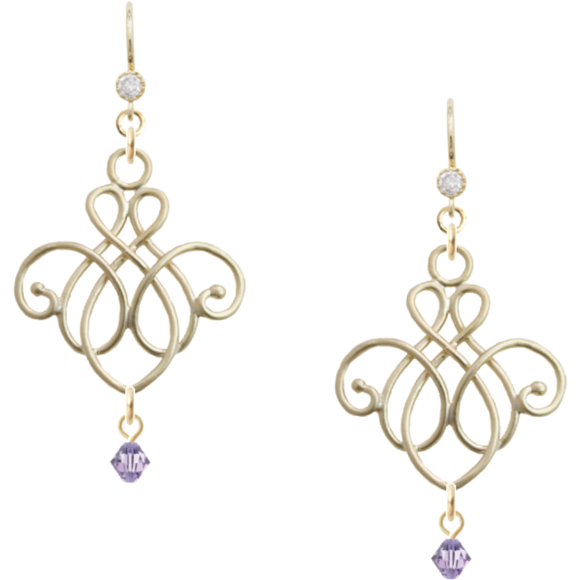 ■ゴールドピアス アラベスクチャーム×スワロフスキー パープル