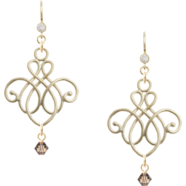 ■ゴールドピアス アラベスクチャーム×スワロフスキー スモーキー