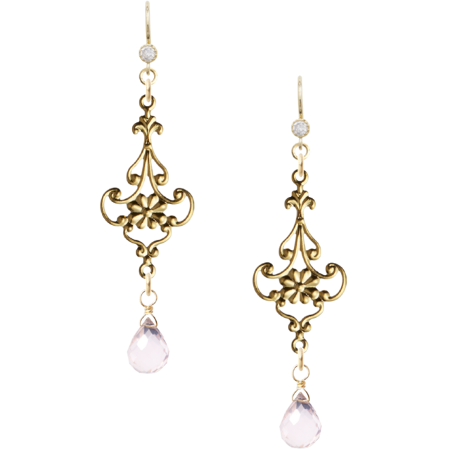 ■ゴールドピアス アラベスクチャーム×ローズクォーツ