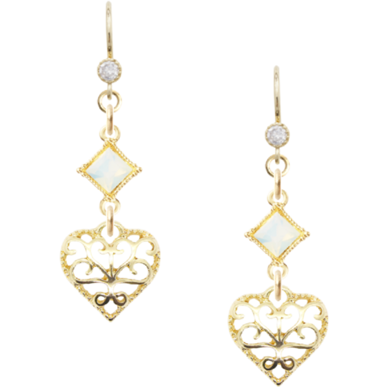 ■ゴールドピアス ハートチャーム×スワロフスキー ホワイト