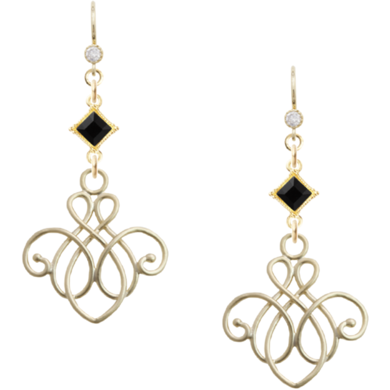 ■ゴールドピアス アラベスクチャーム×スワロフスキー ブラック