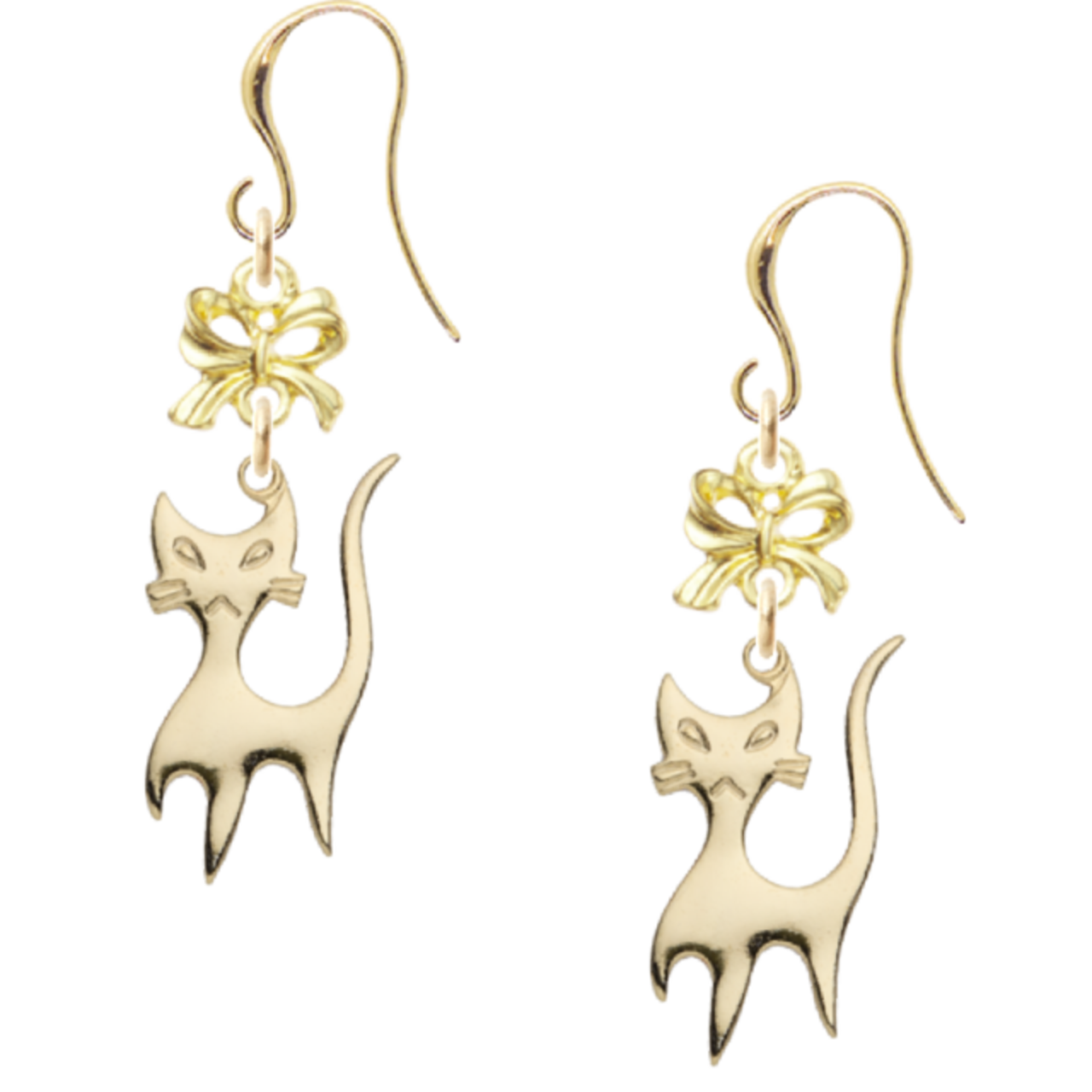 この魅力的なゴールドピアスには、愛らしい猫と可愛いリボンをモチーフにしたデザインが施されています。特別な日や日常のおしゃれに、遊び心を加え、耳元で軽やかに揺れるその姿が光を美しく反射し、あなたの魅力を一層引き立てます。猫とリボンのデザインは、見る角度によって異なる表情を見せ、あなたの個性を際立たせ、周囲の視線を惹きつけることは間違いありません!