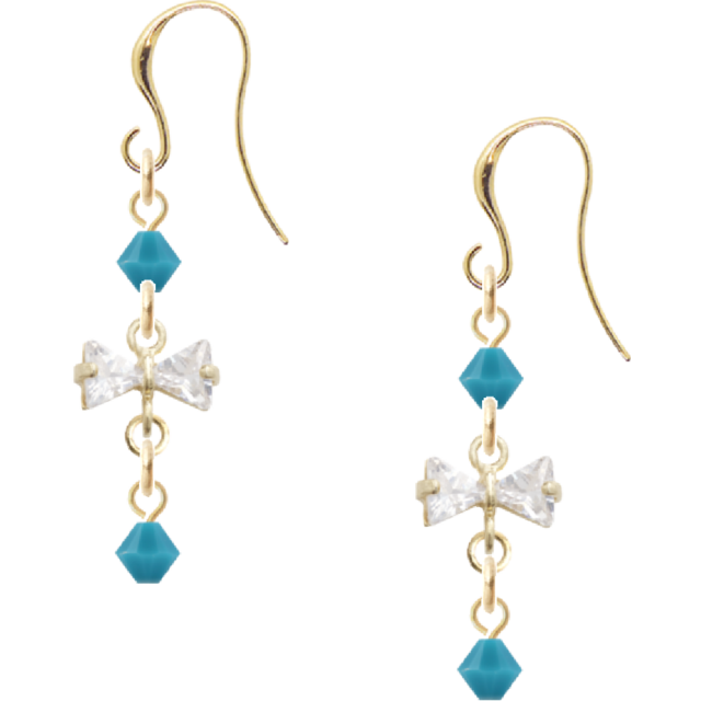 ■ゴールド ピアス スワロフスキー リボンチャーム