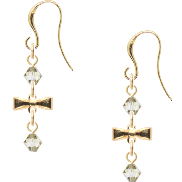 ■ゴールド ピアス スワロフスキー リボンチャーム
