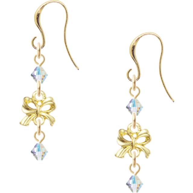 ■ゴールド ピアス スワロフスキー リボンチャーム