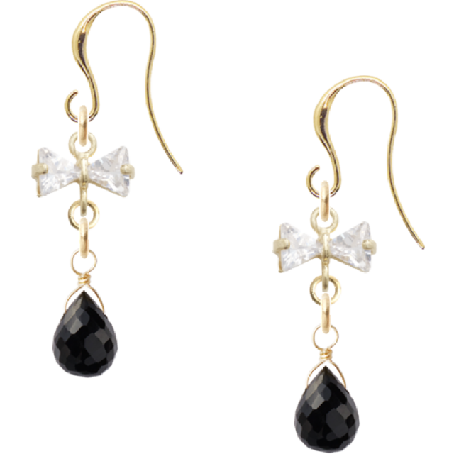 ■ゴールド ピアス ブラックスピネル リボンチャーム