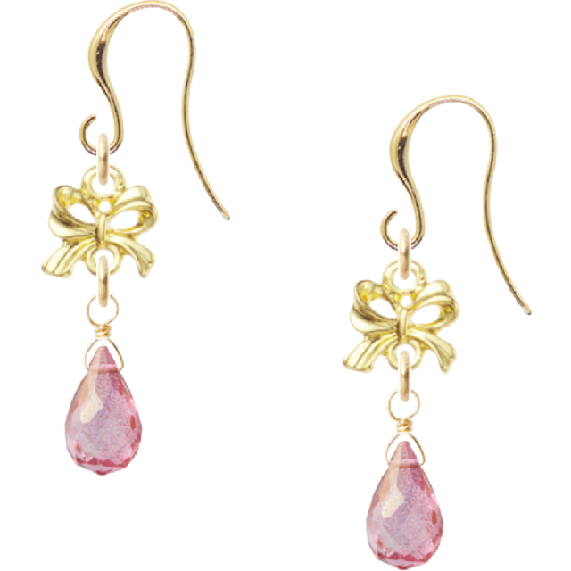 ■ゴールド ピアス ピンクトパーズ リボンチャーム