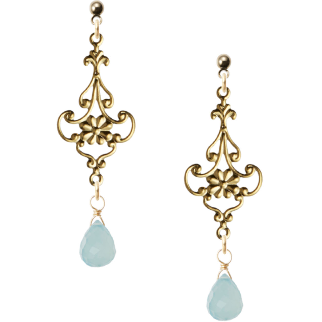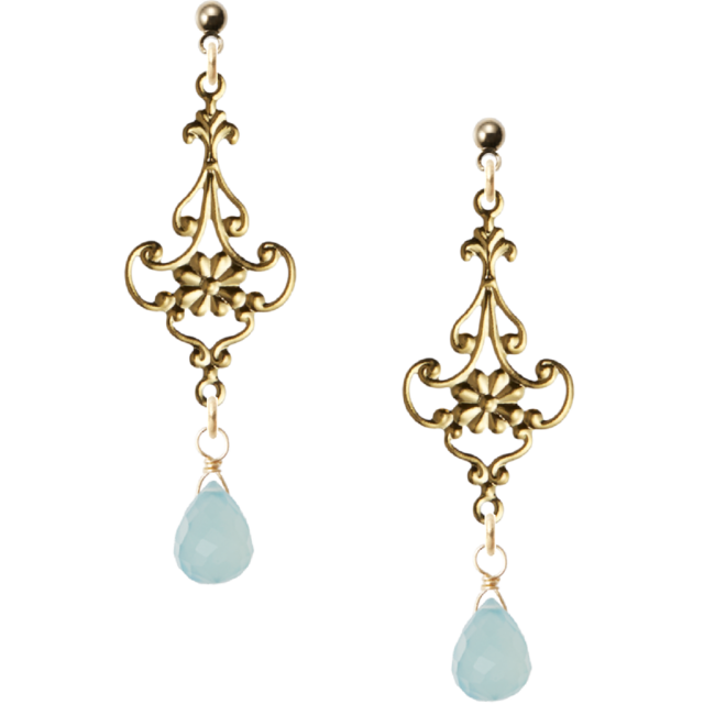 ■ゴールド ピアス アラベスクチャーム シーブルーカルセドニー