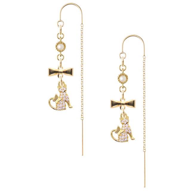 ■ゴールド チェーンピアス リボン 猫チャーム