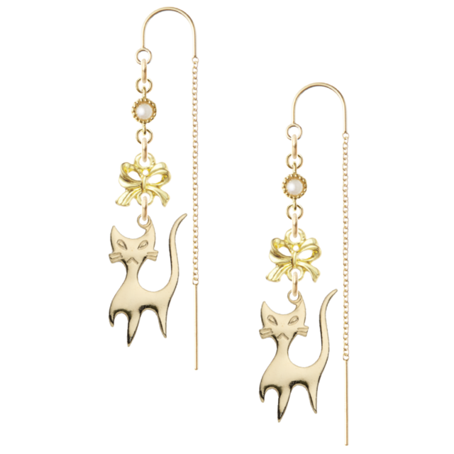 この魅力的なゴールドのチェーンピアスは、愛らしい猫チャームが特徴です。日常のファッションに遊び心を加え、特別なシーンでもその個性的なスタイルがあなたの魅力を引き立てます。優雅に揺れるチェーンが、猫チャームの可愛らしさと見事に調和し、印象的な存在感を演出する逸品です。猫好きな方やユニークなアクセサリーをお求めの方にぜひおすすめしたい商品です!