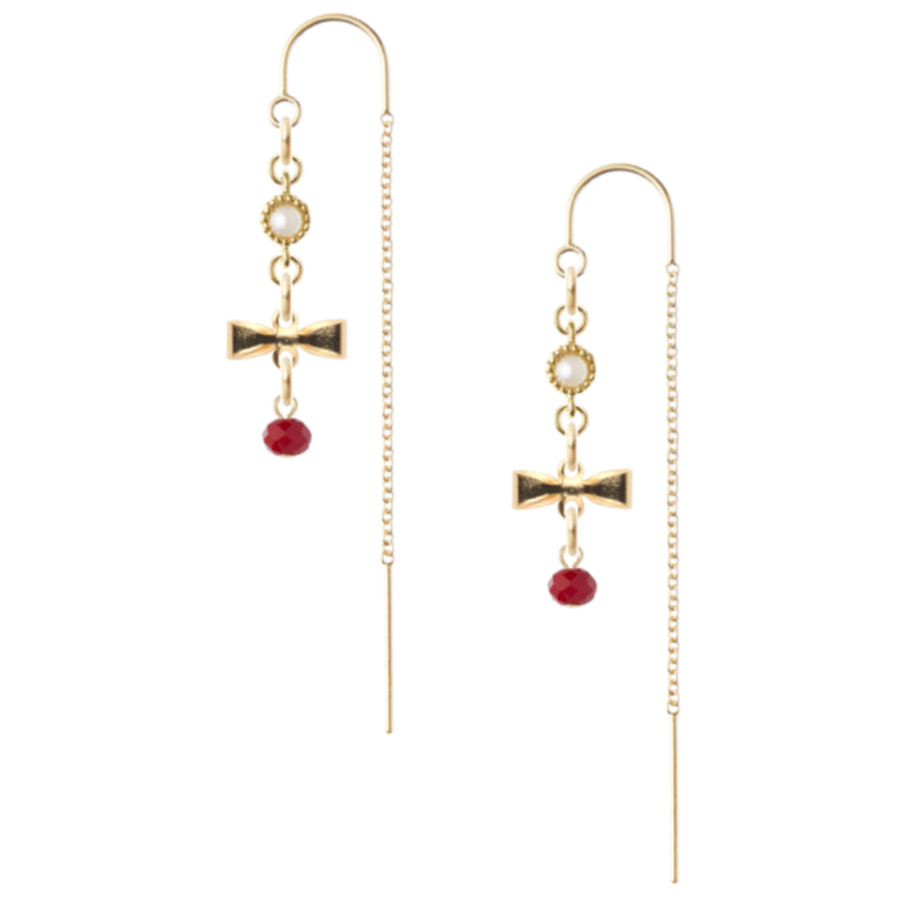この魅力的なゴールドのチェーンピアスは、愛らしいリボンチャームが特徴です。日常のファッションに上品なアクセントを加え、特別なシーンでもその個性的なスタイルがあなたの魅力を引き立てます。優雅に揺れるチェーンが、リボンチャームの可愛さと上品さを見事に調和させ、印象的な存在感を演出する逸品です。リボンデザインやユニークなアクセサリーがお好きな方にぜひおすすめしたい商品です!