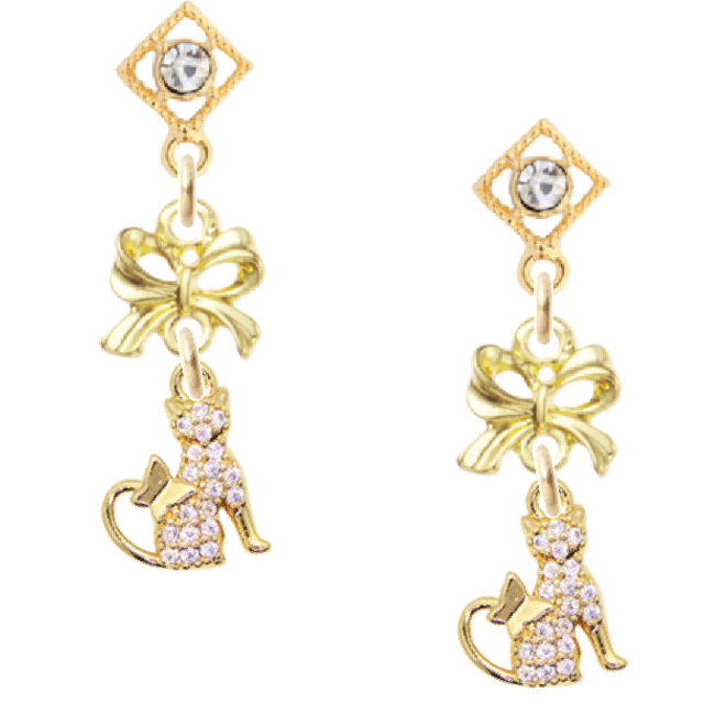 この魅力的なゴールドのピアスは、可愛らしいリボンと愛らしい猫チャームが特徴です。日常のファッションに遊び心を加え、特別なシーンでもそのユニークなスタイルがあなたの魅力を引き立てます。リボンの可愛らしさと猫チャームのキュートさ、さらには輝くゴールドが見事に調和し、シンプルながらも印象的な存在感を演出する逸品です。個性的で魅力いっぱいのアクセサリーをお求めの方にはぜひおすすめしたい商品です!