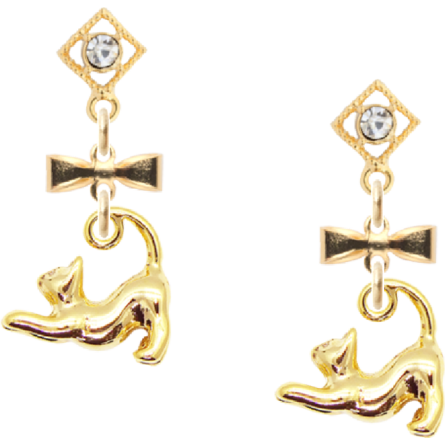 この魅力的なゴールドのピアスは、可愛らしいリボンと愛らしい猫チャームが特徴です。日常のファッションに遊び心を加え、特別なシーンでもそのユニークなスタイルがあなたの魅力を引き立てます。リボンの可愛らしさと猫チャームのキュートさ、さらには輝くゴールドが絶妙に調和し、シンプルながらも印象的な存在感を演出する逸品です。個性的で愛らしいアクセサリーを求める方にはぜひお勧めしたい商品です!