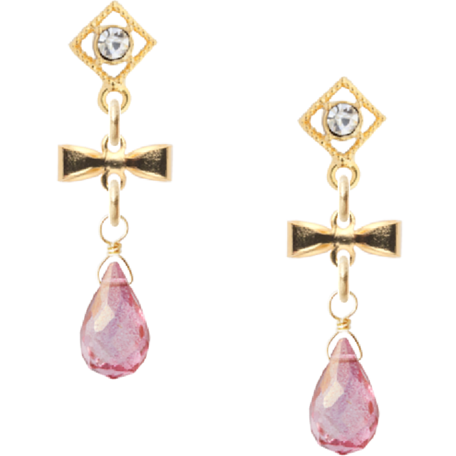 ■ゴールドピアス リボンチャーム ピンクトパーズ