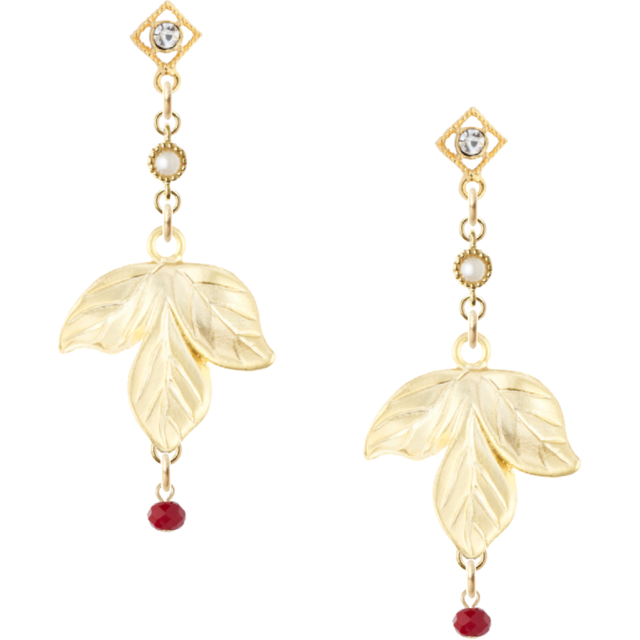 この魅力的なゴールドのピアスは、エレガントなリーフデザインと鮮やかなレッドのガラスビーズが特徴的なスタイルです。日常のファッションに大胆さを加え、特別なシーンでもあなたの魅力を一層引き立てます。リーフモチーフの洗練された美しさと、レッドのビーズの華やかな色合いが見事に調和し、センスの良さを感じさせる逸品です。特別なアクセサリーをお探しの方にはぜひ楽しんでいただきたいアイテムです!