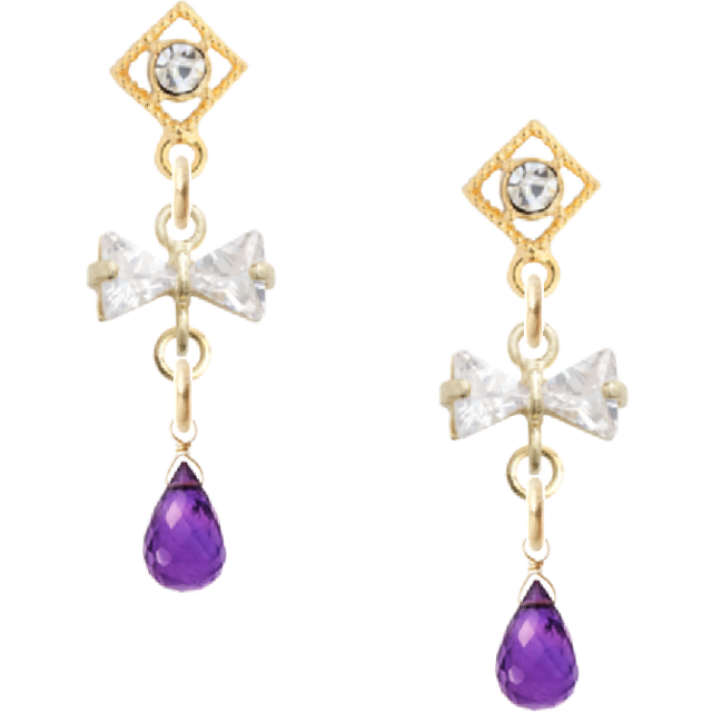 ■ゴールドピアス リボンチャーム アメジスト