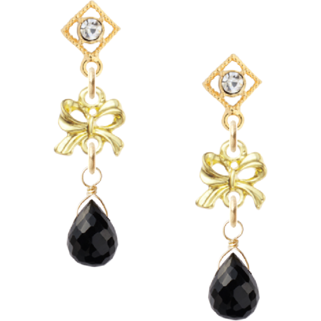 ■ゴールドピアス リボンチャーム ブラックスピネル