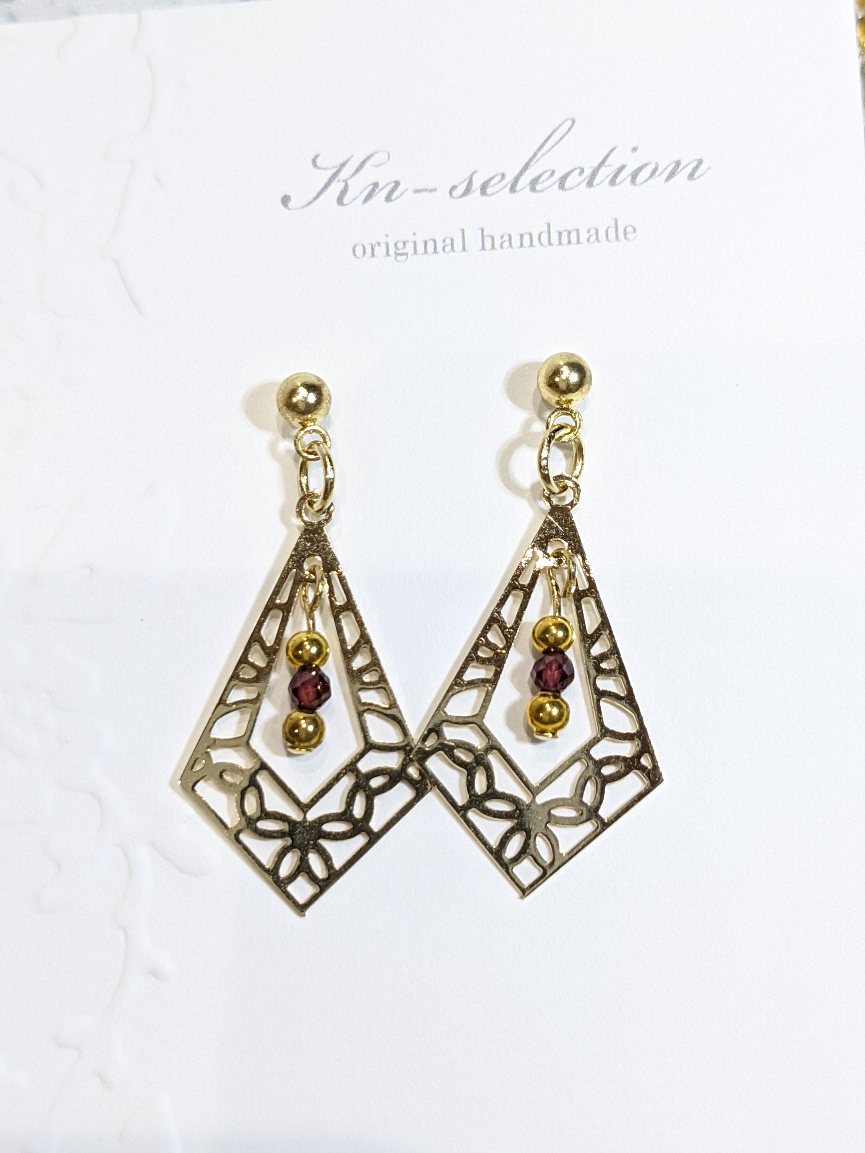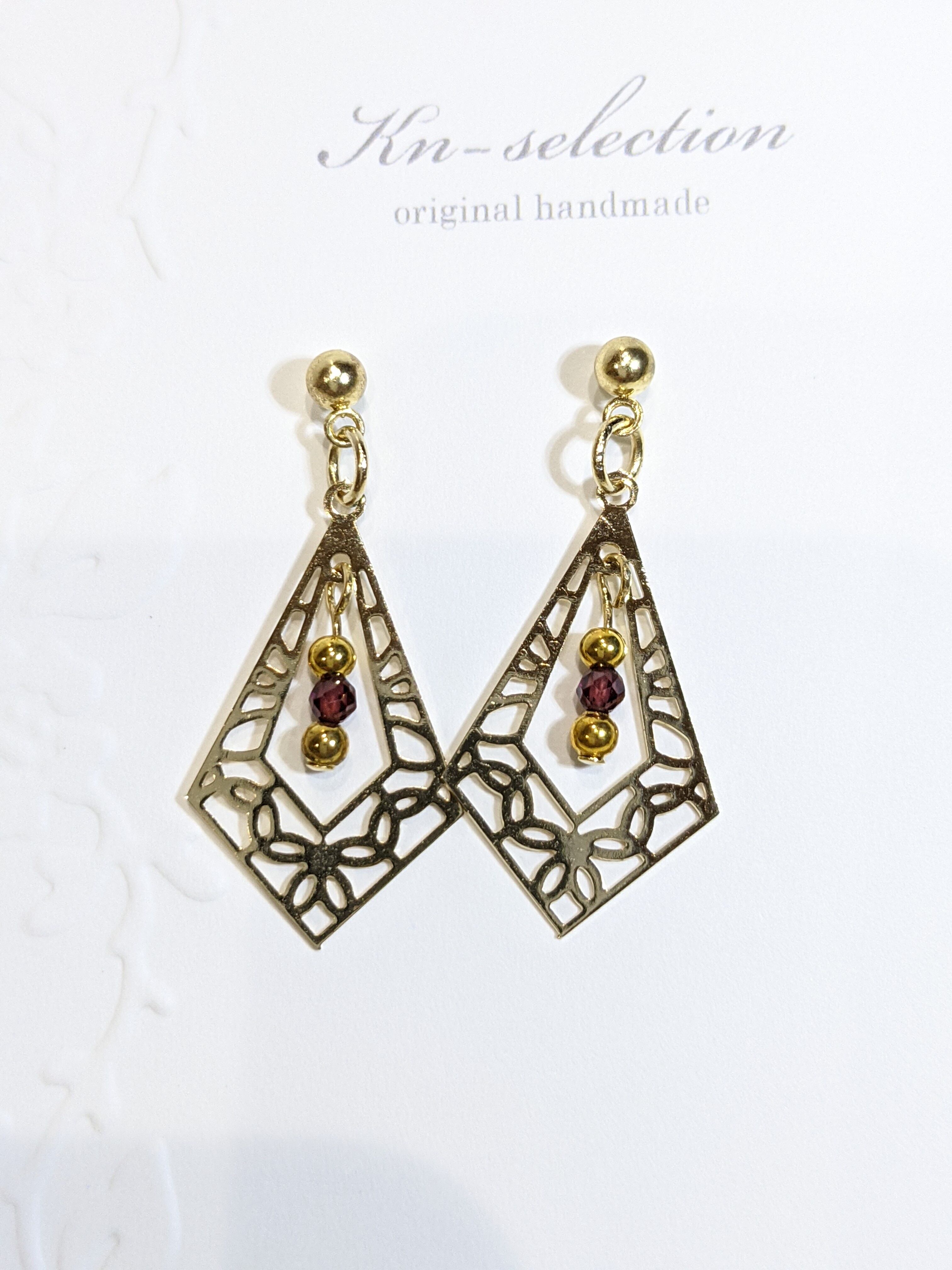 ゴールドのクラシカルなパーツにメタルビーズとガーネットを組み合わせました。