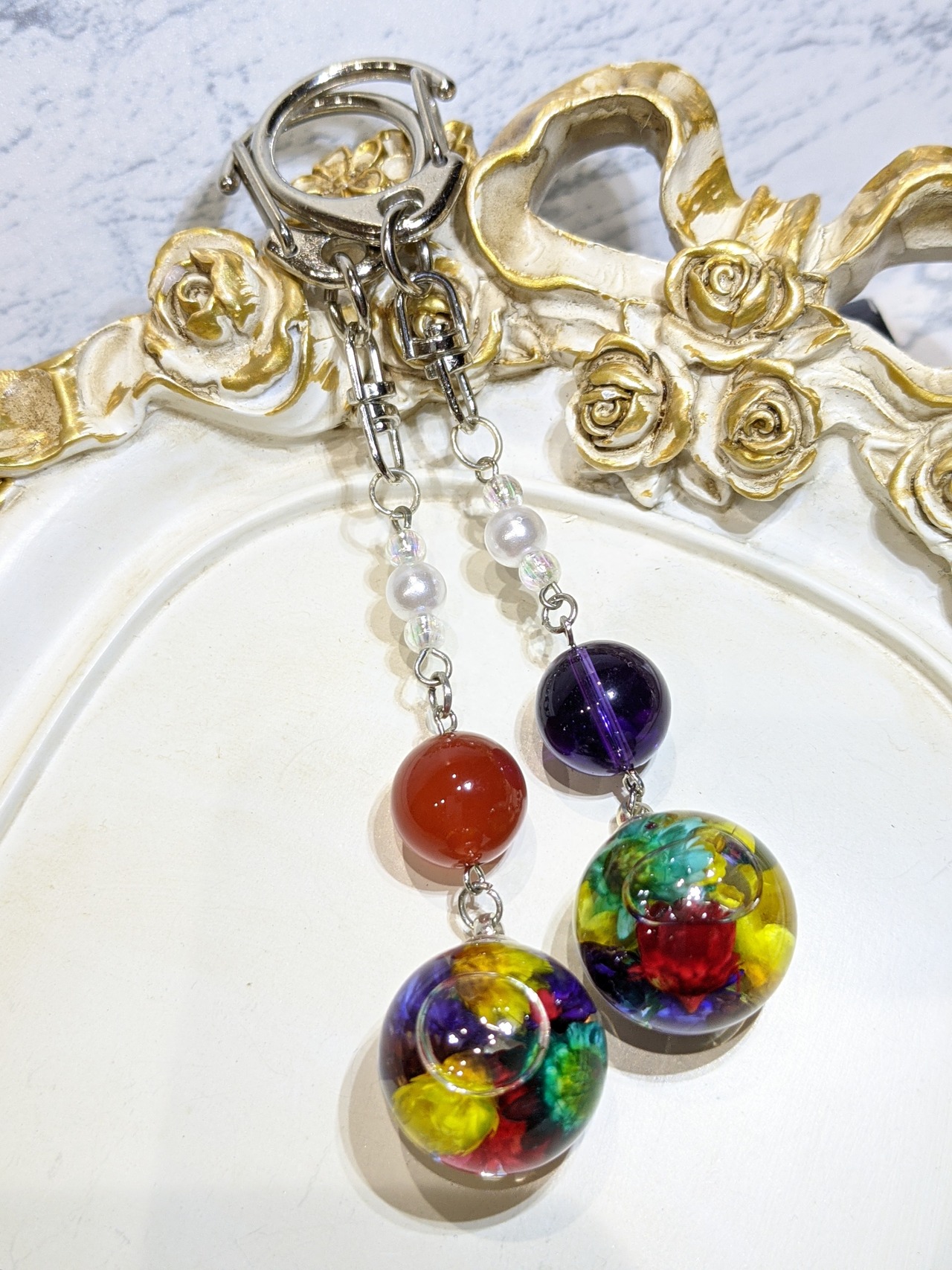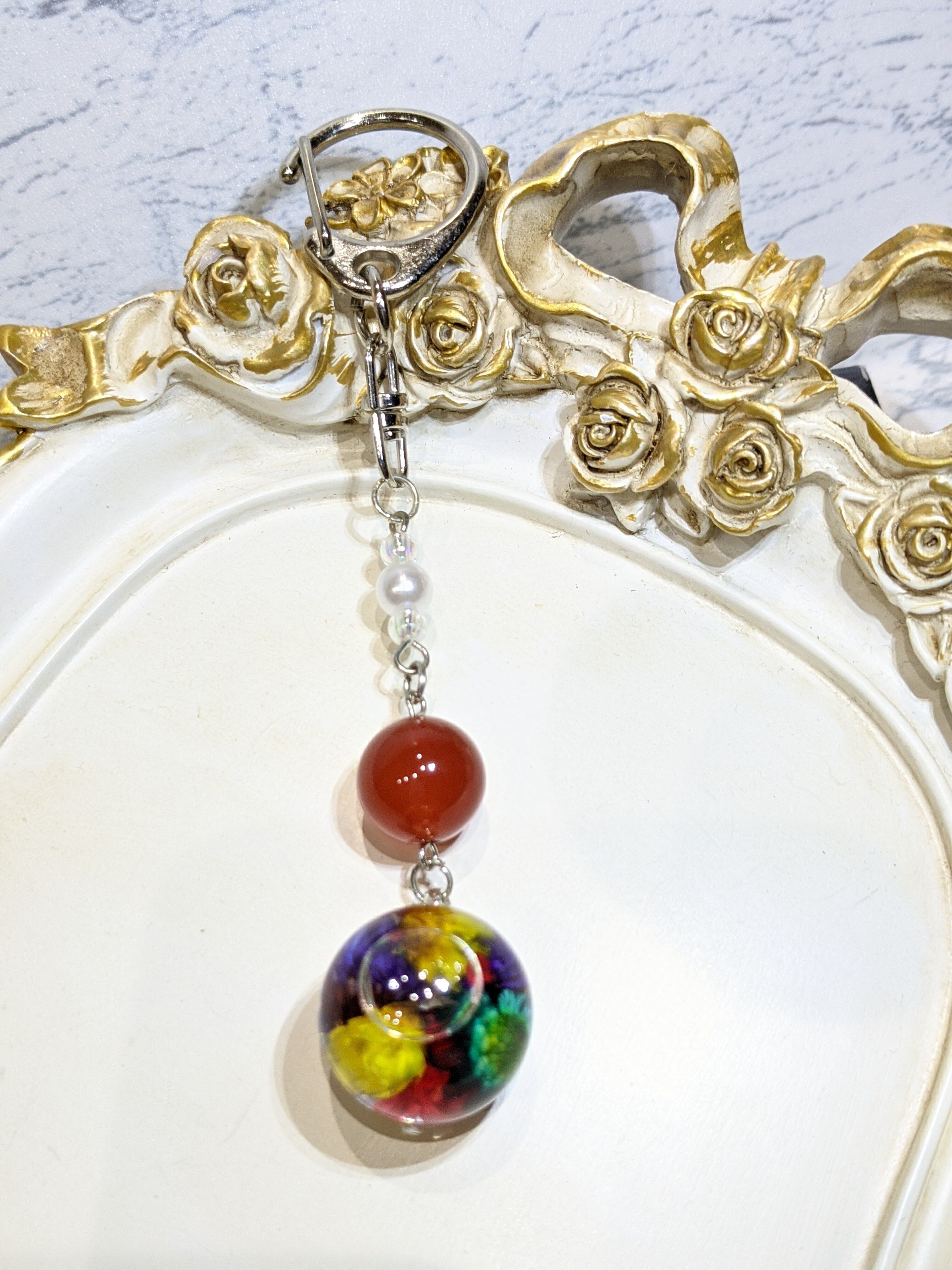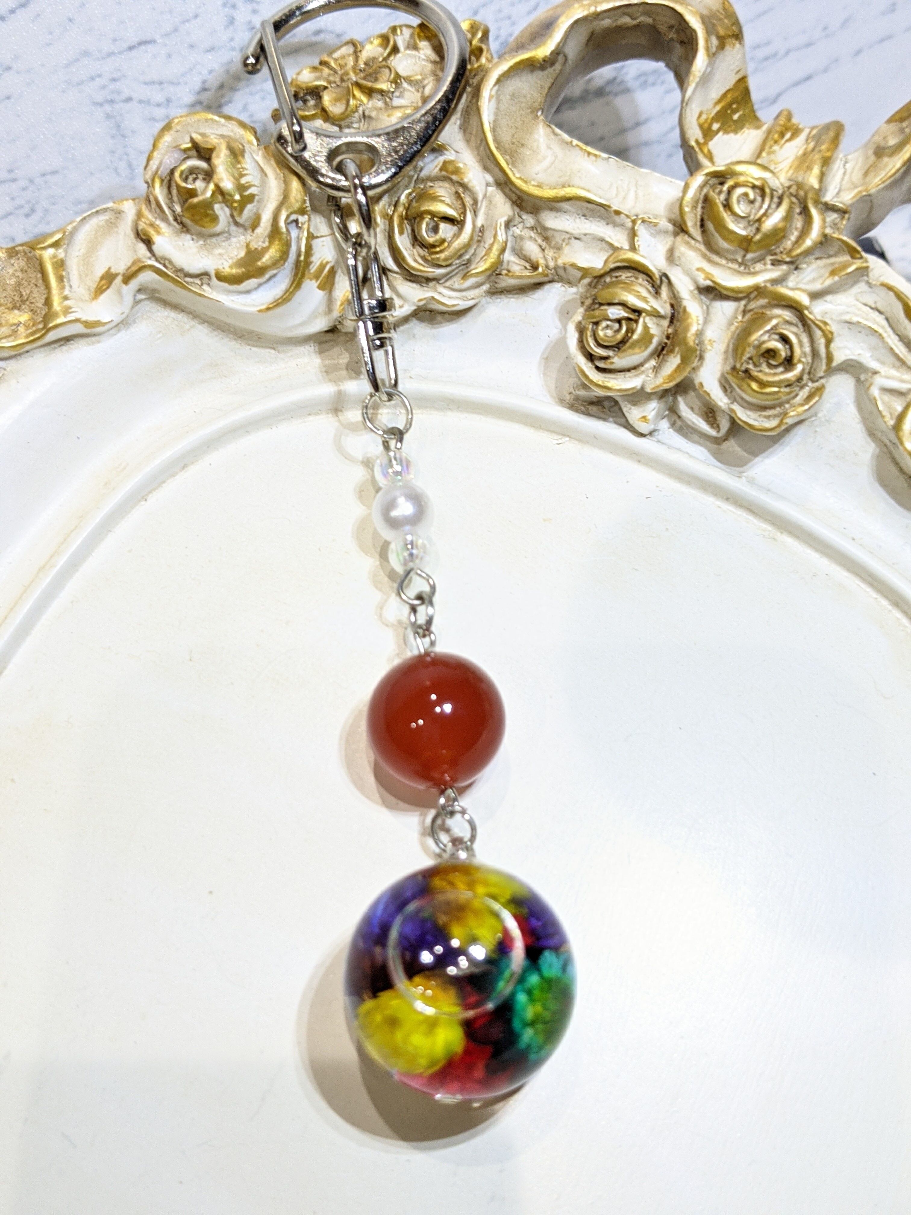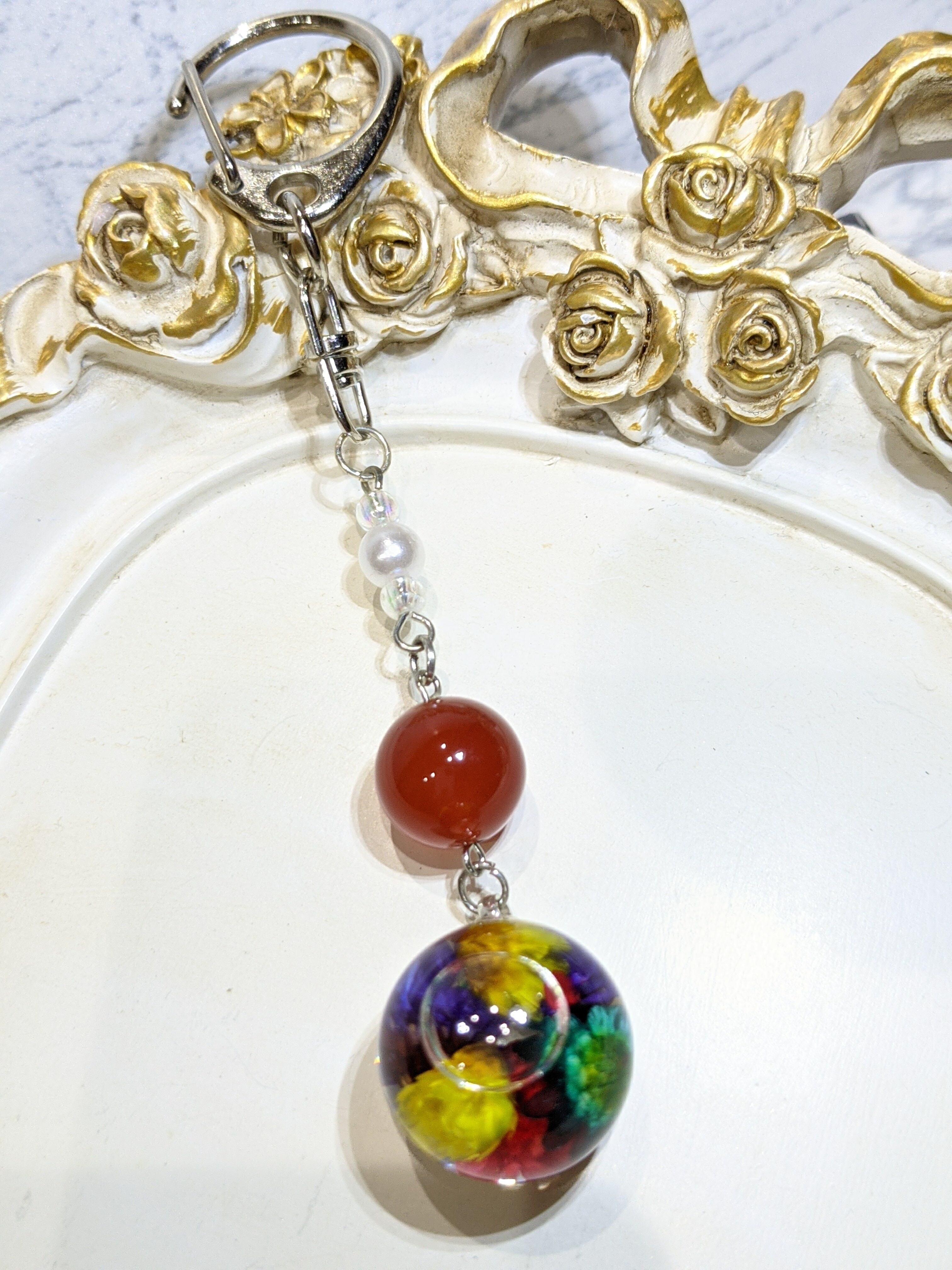 ハーバリウムのガラスドームにドライフラワーを詰め込み、