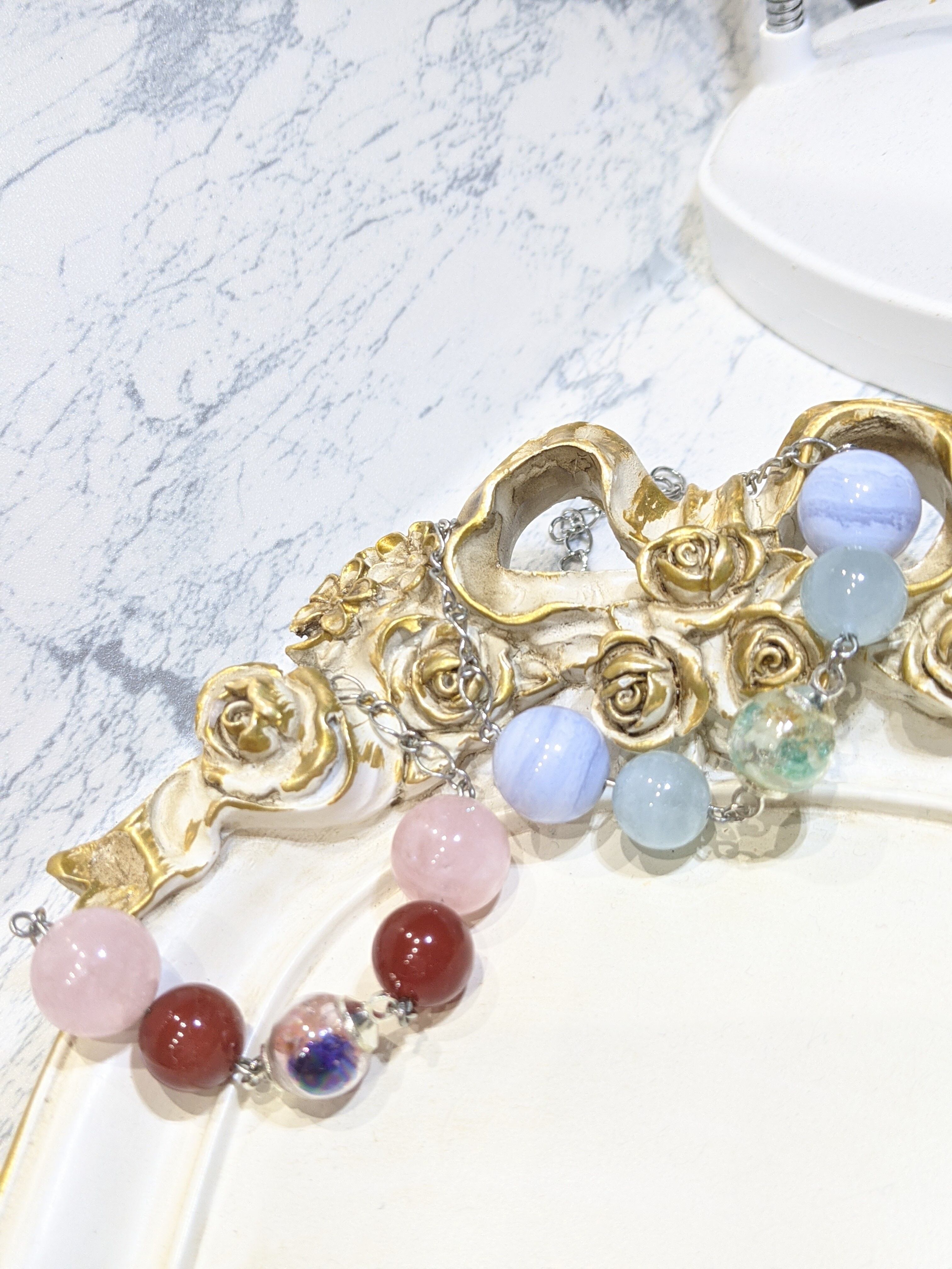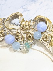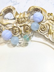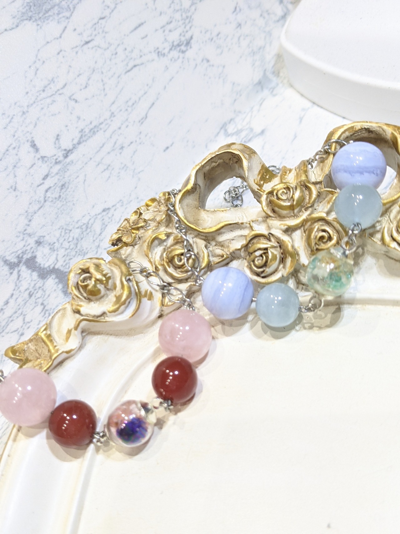 天然石の大玉と、ドライフラワーを詰め込んだガラスドームをくみあわせました。