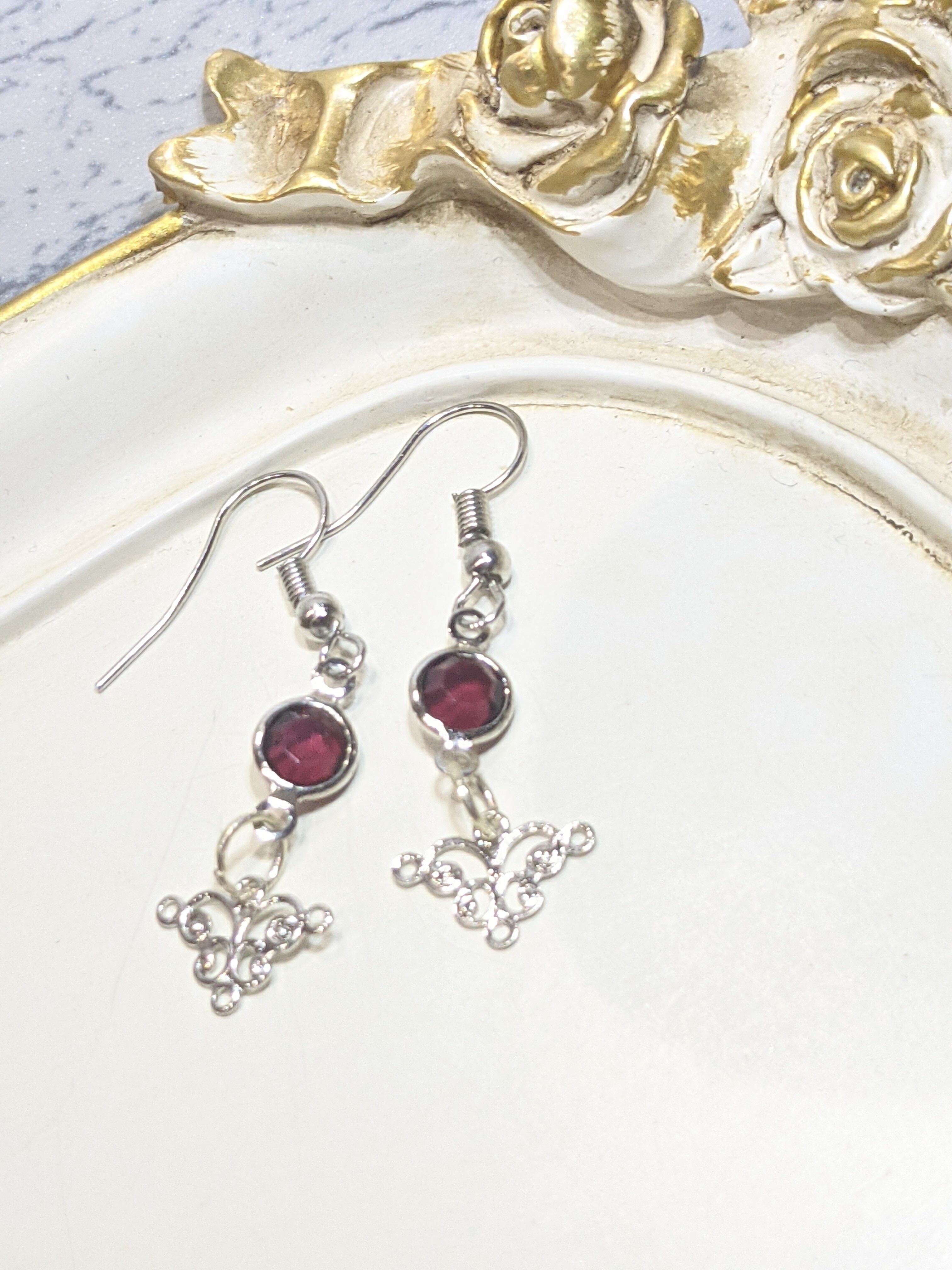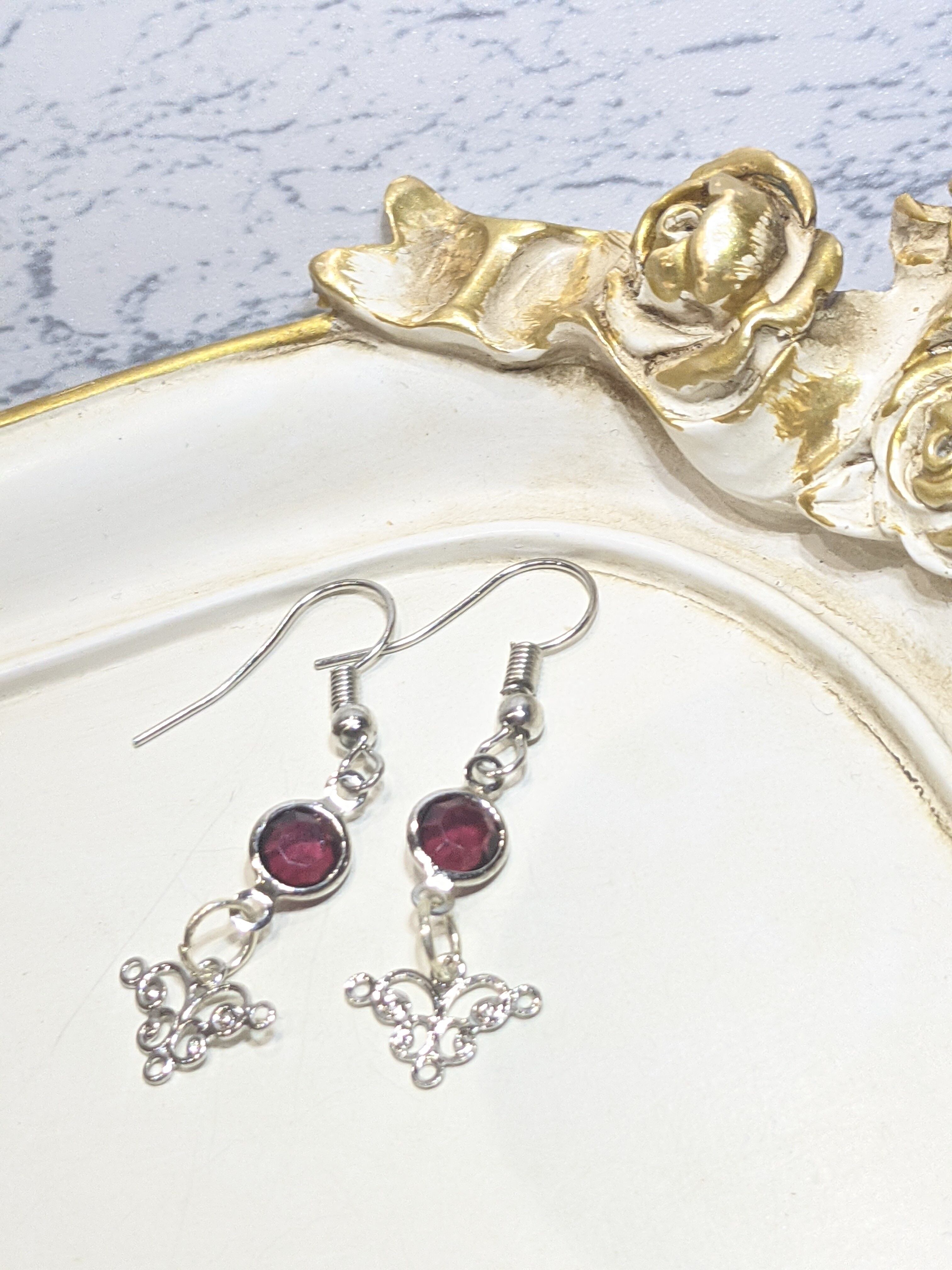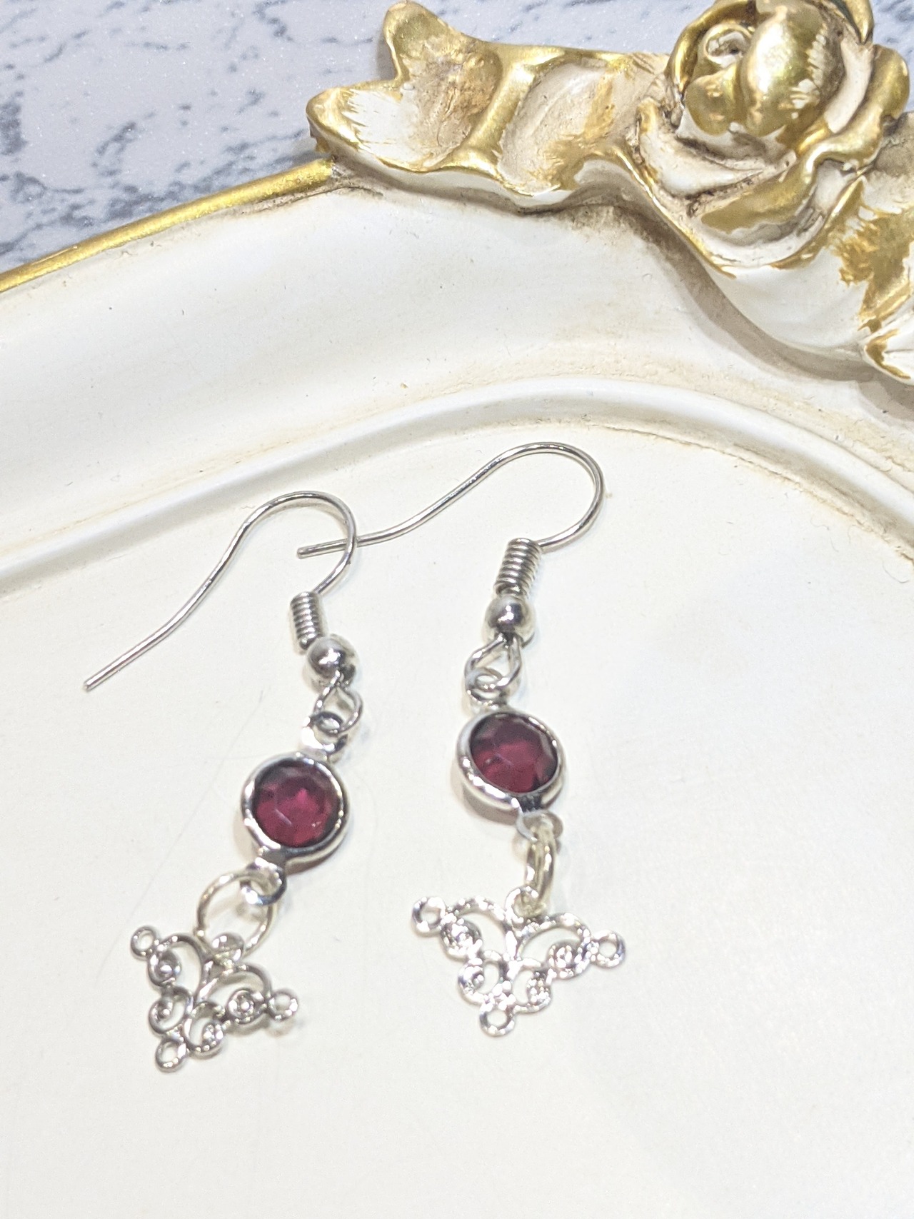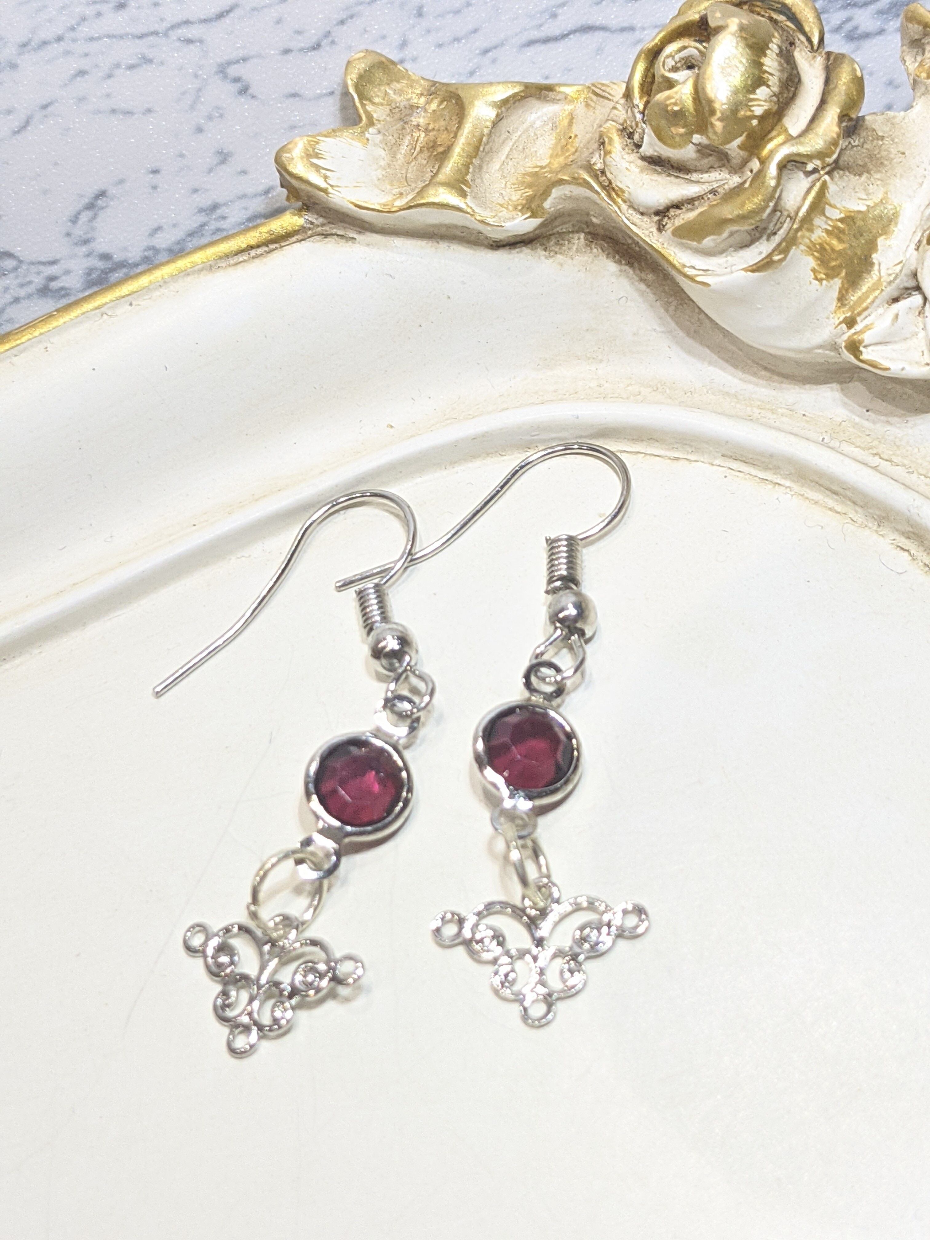 シルバーのクラシカルなパーツにボルドージルコニアを組み合わせました。