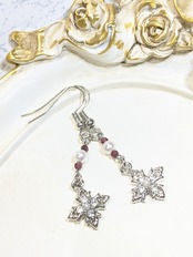 シルバーのクロスパーツに天然石のガーネットとパールビーズを組み合わせました。