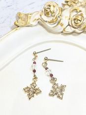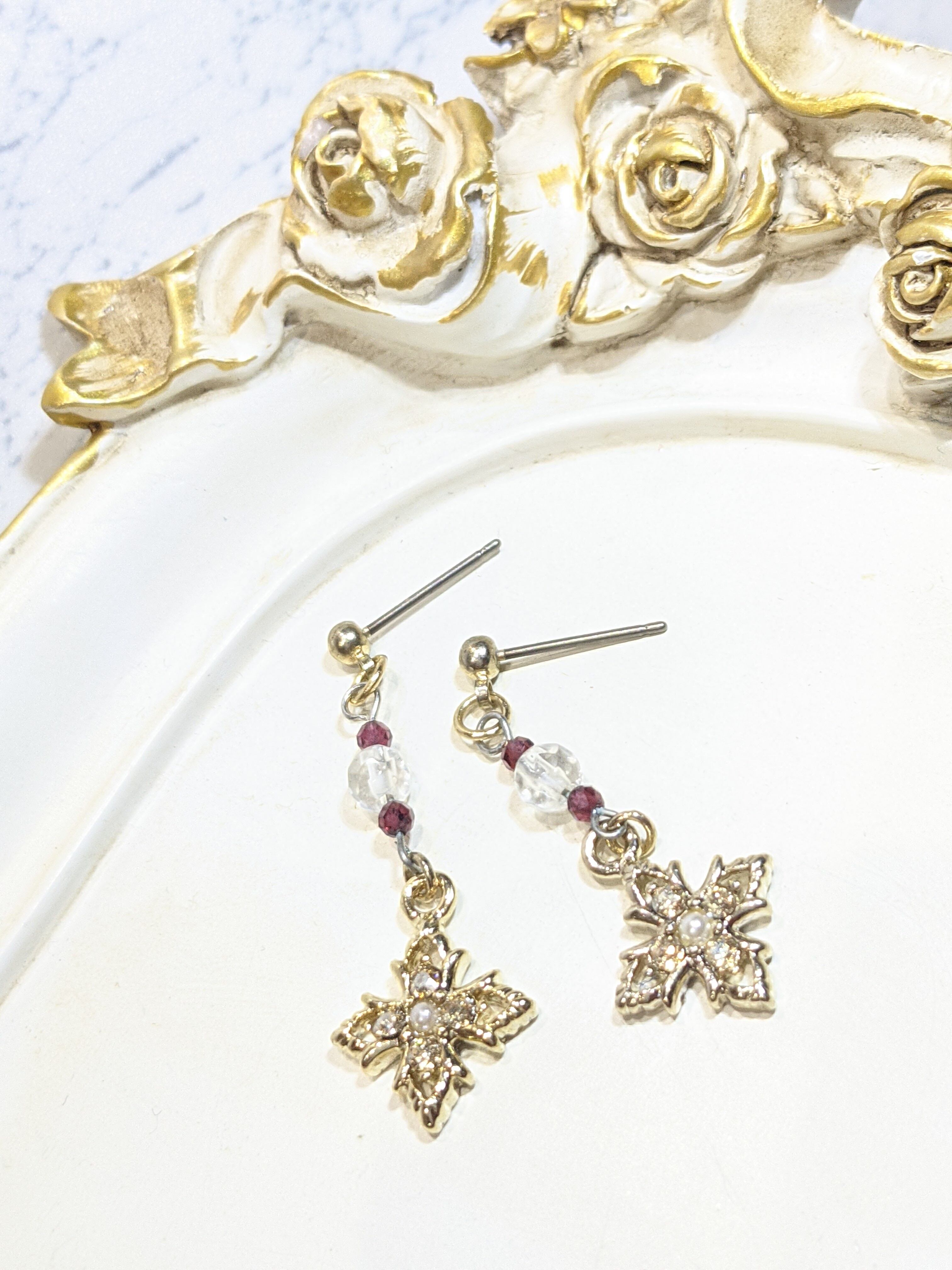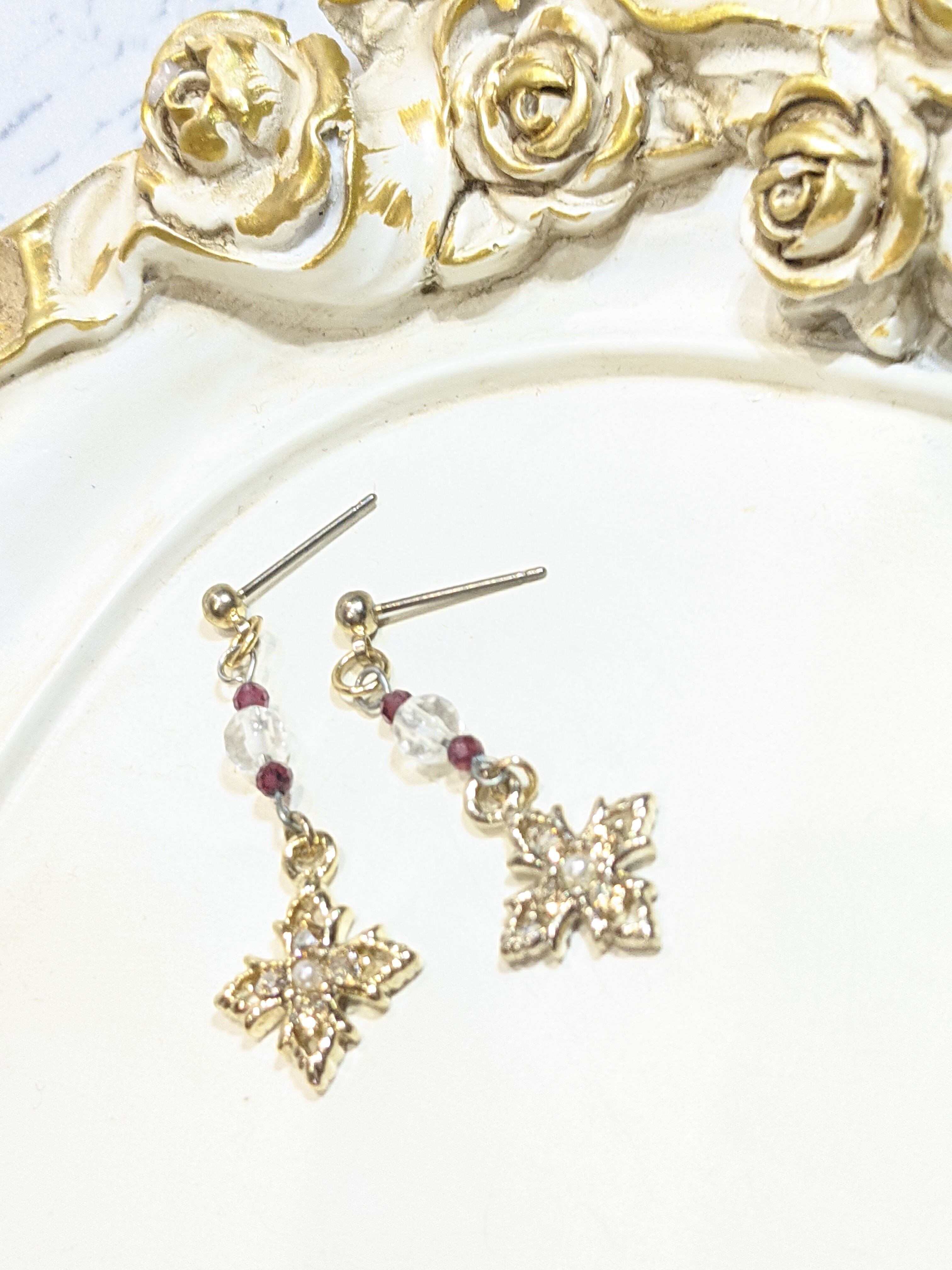 ゴールドのクロスパーツにガーネットとクリスタルクオーツを組み合わせました。