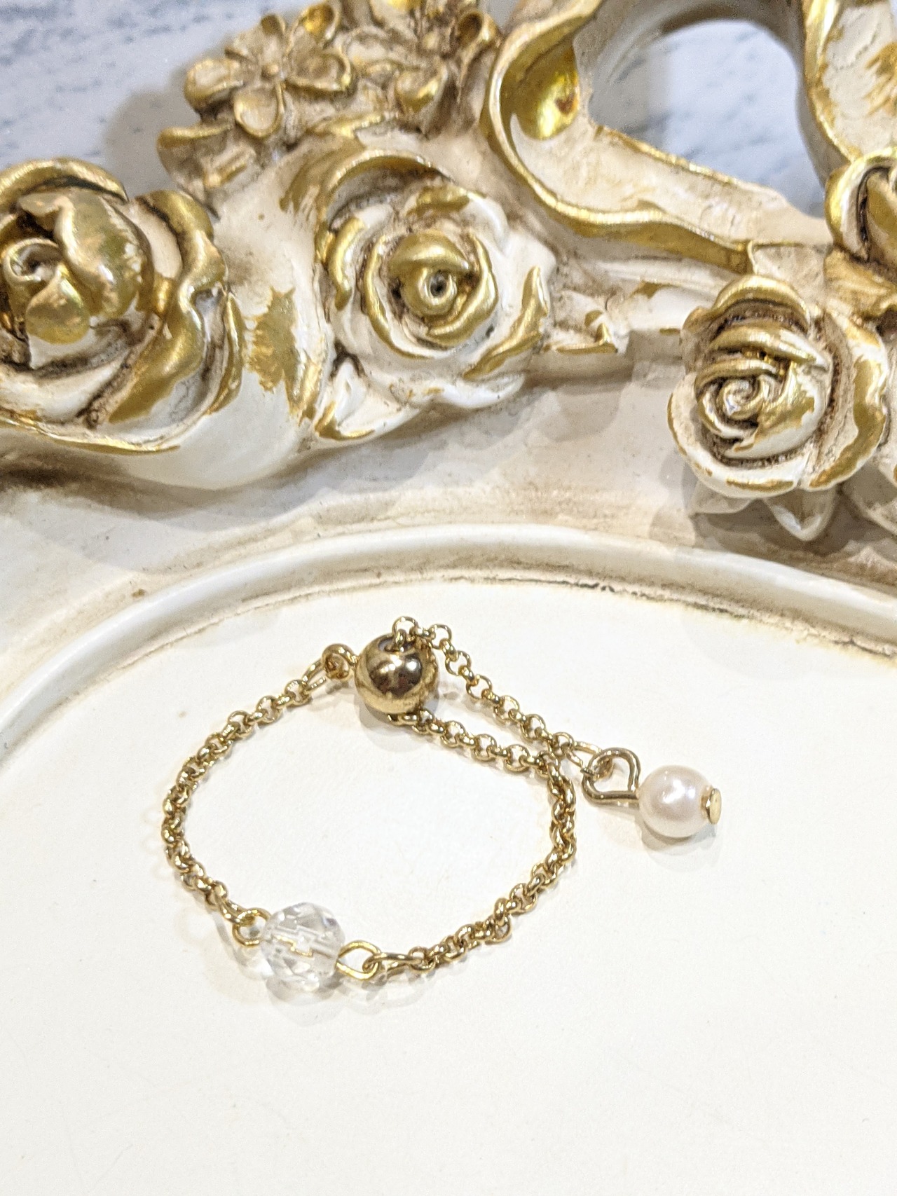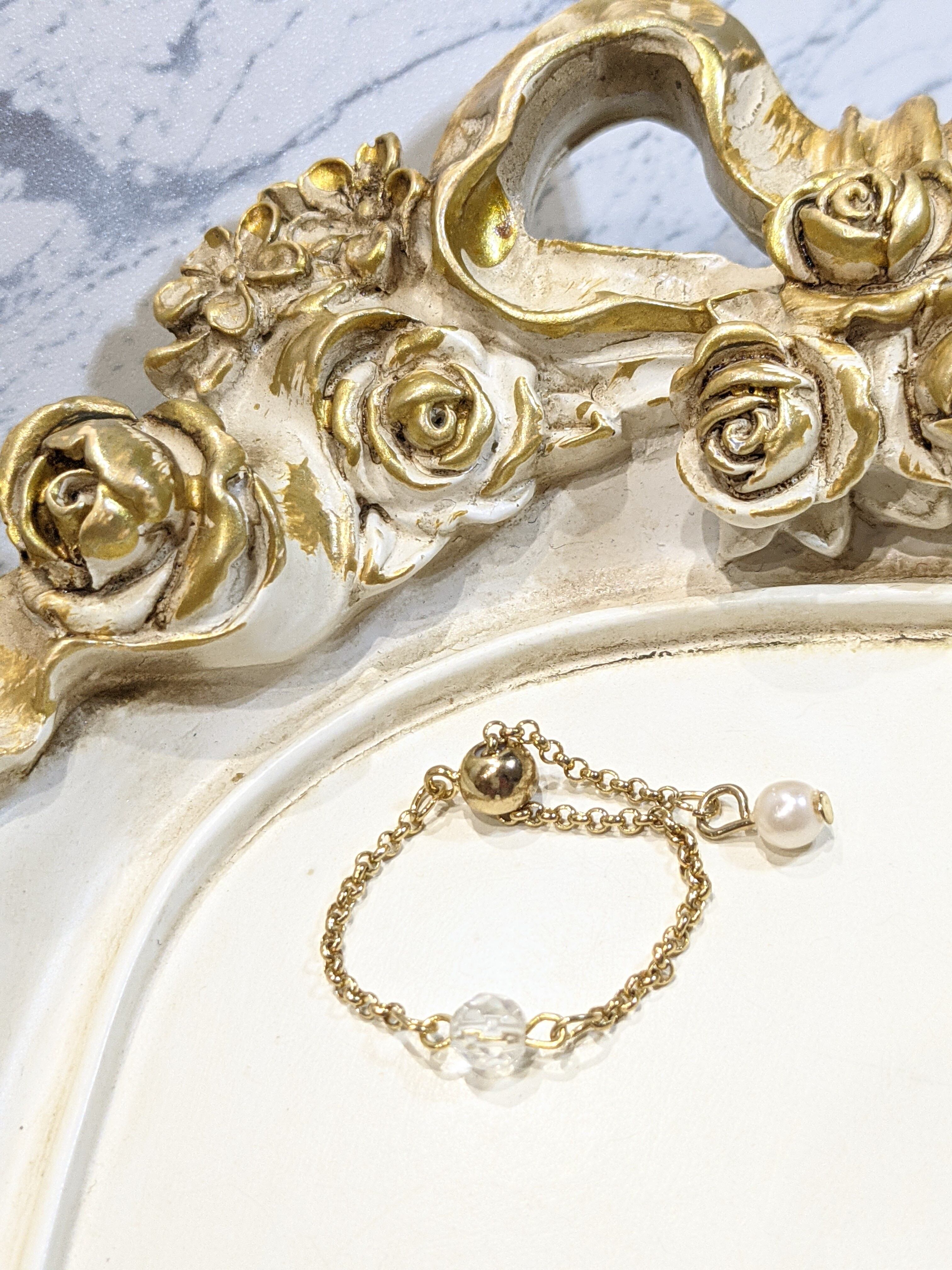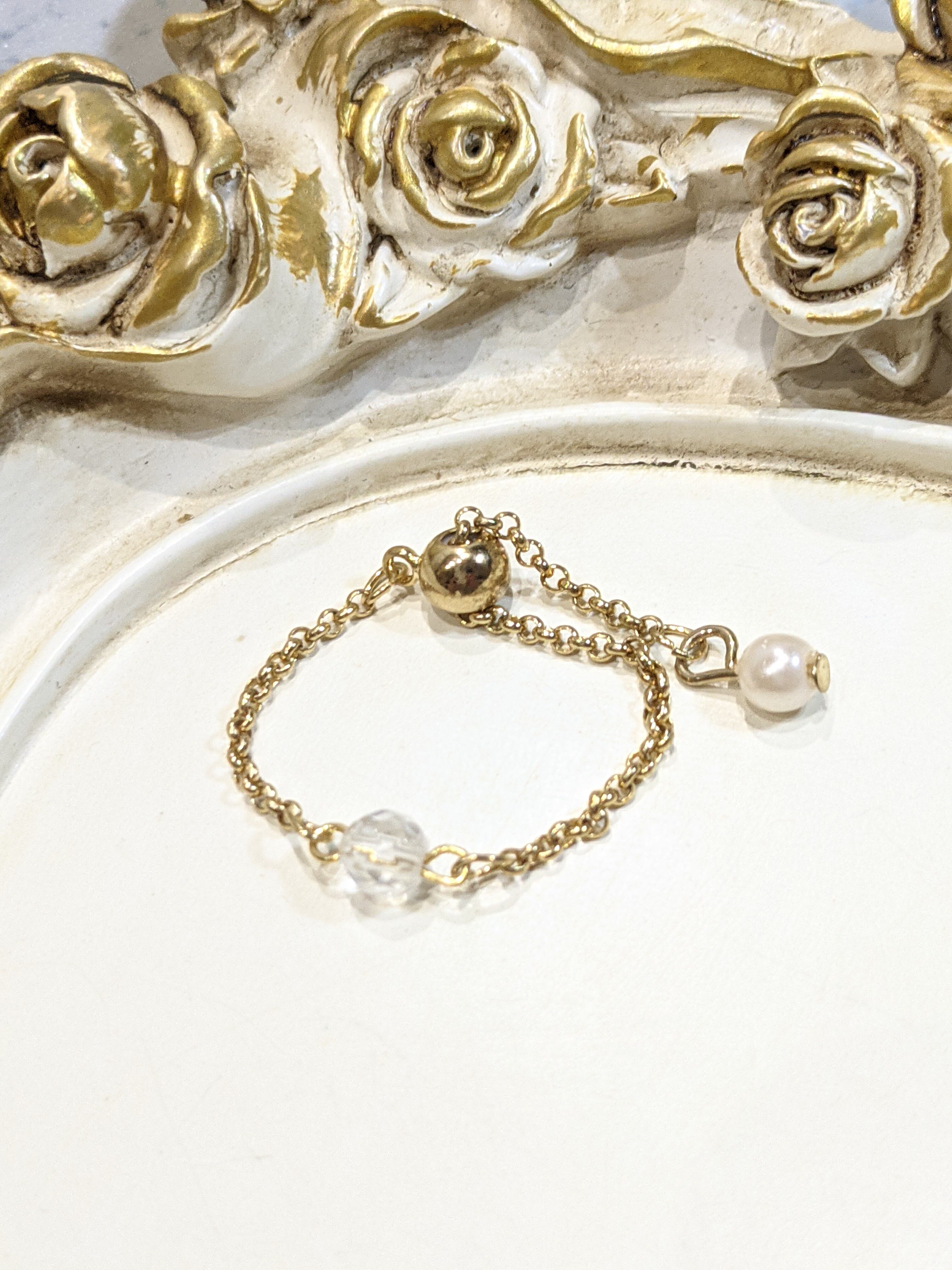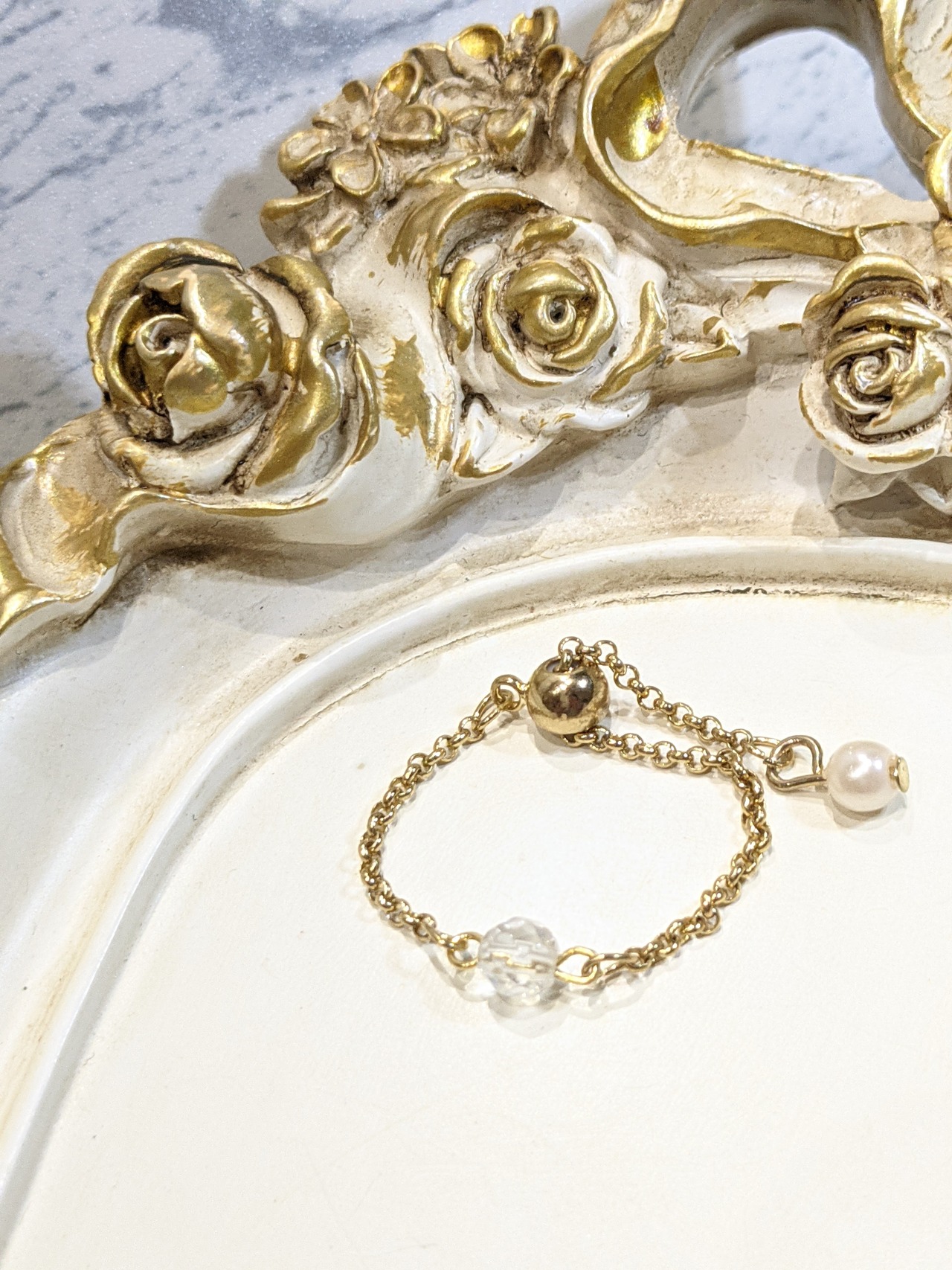 あらゆる幸運を引き寄せる万能石 クリスタルクオーツ チェーンリング ゴールド