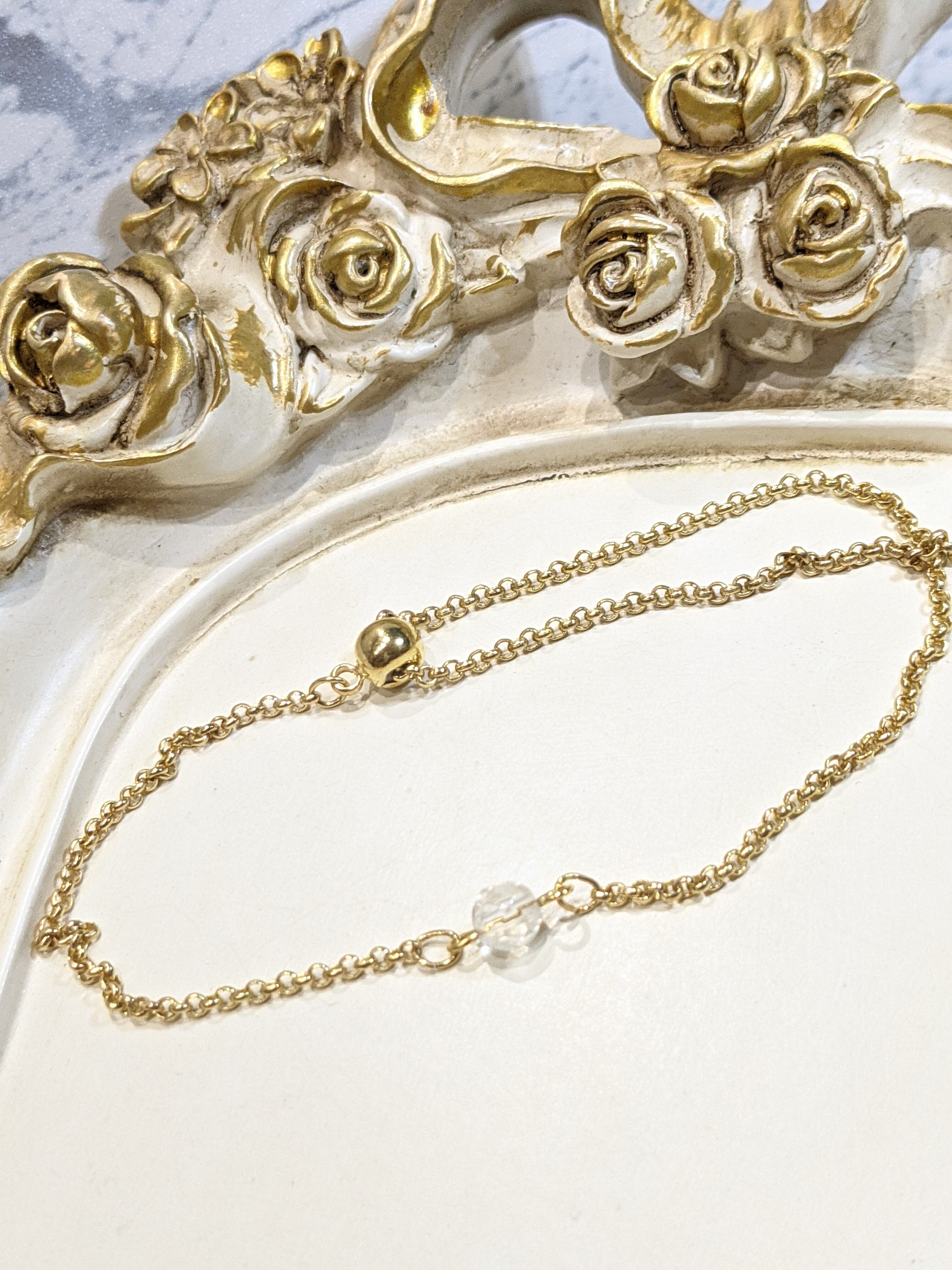 あらゆる幸運を引き寄せる万能石 クリスタルクオーツ チェーンブレスレット ゴールド