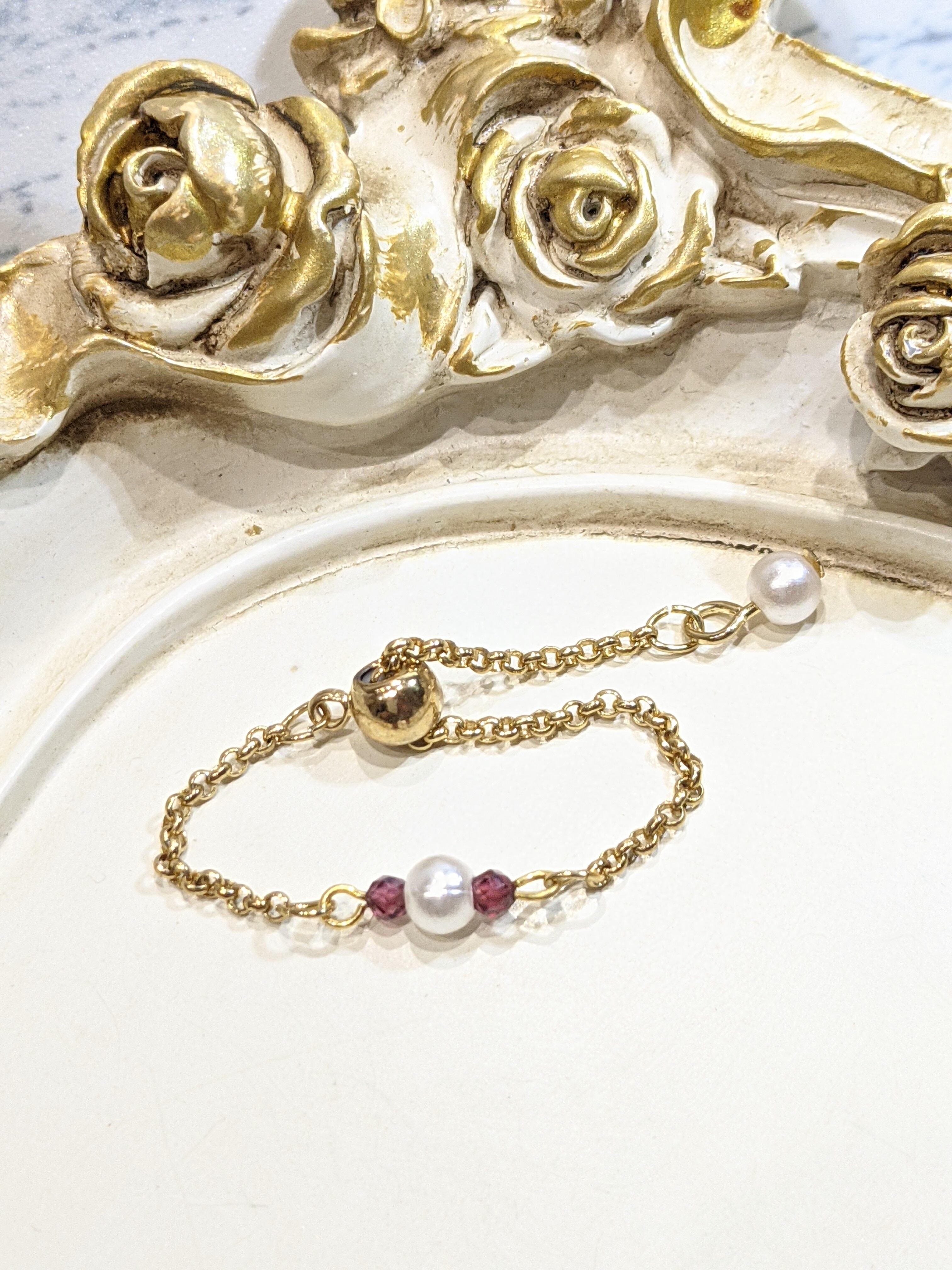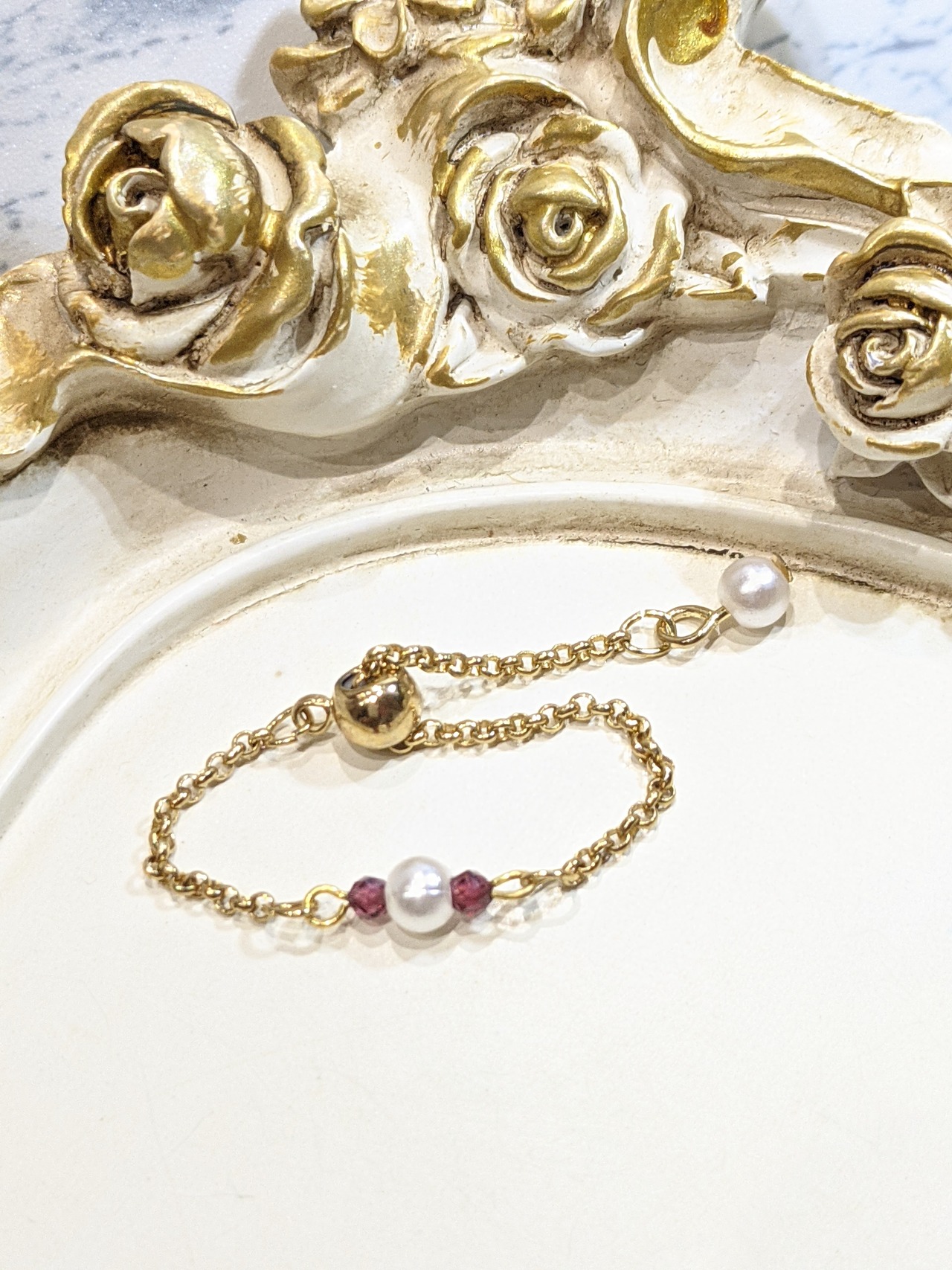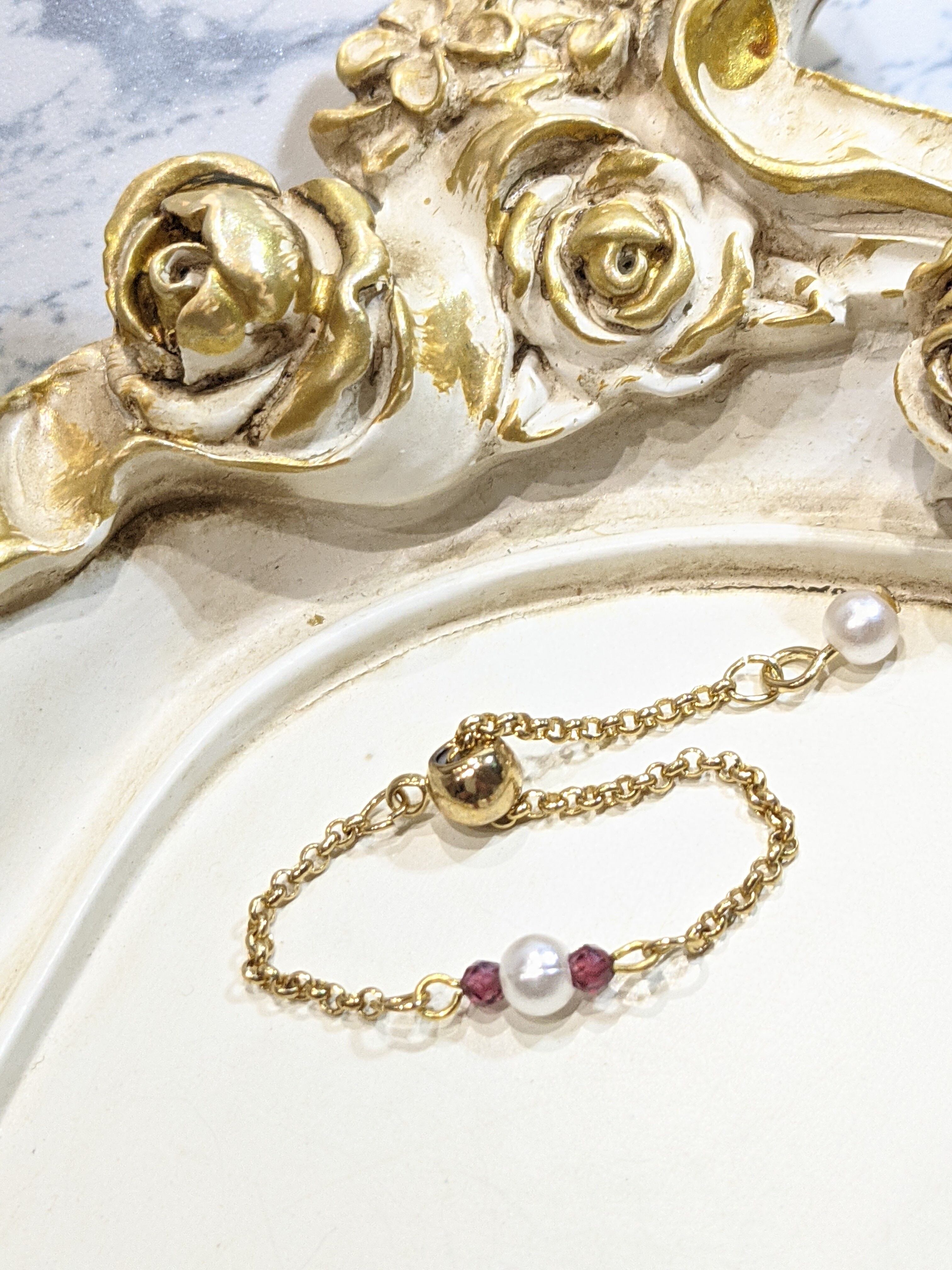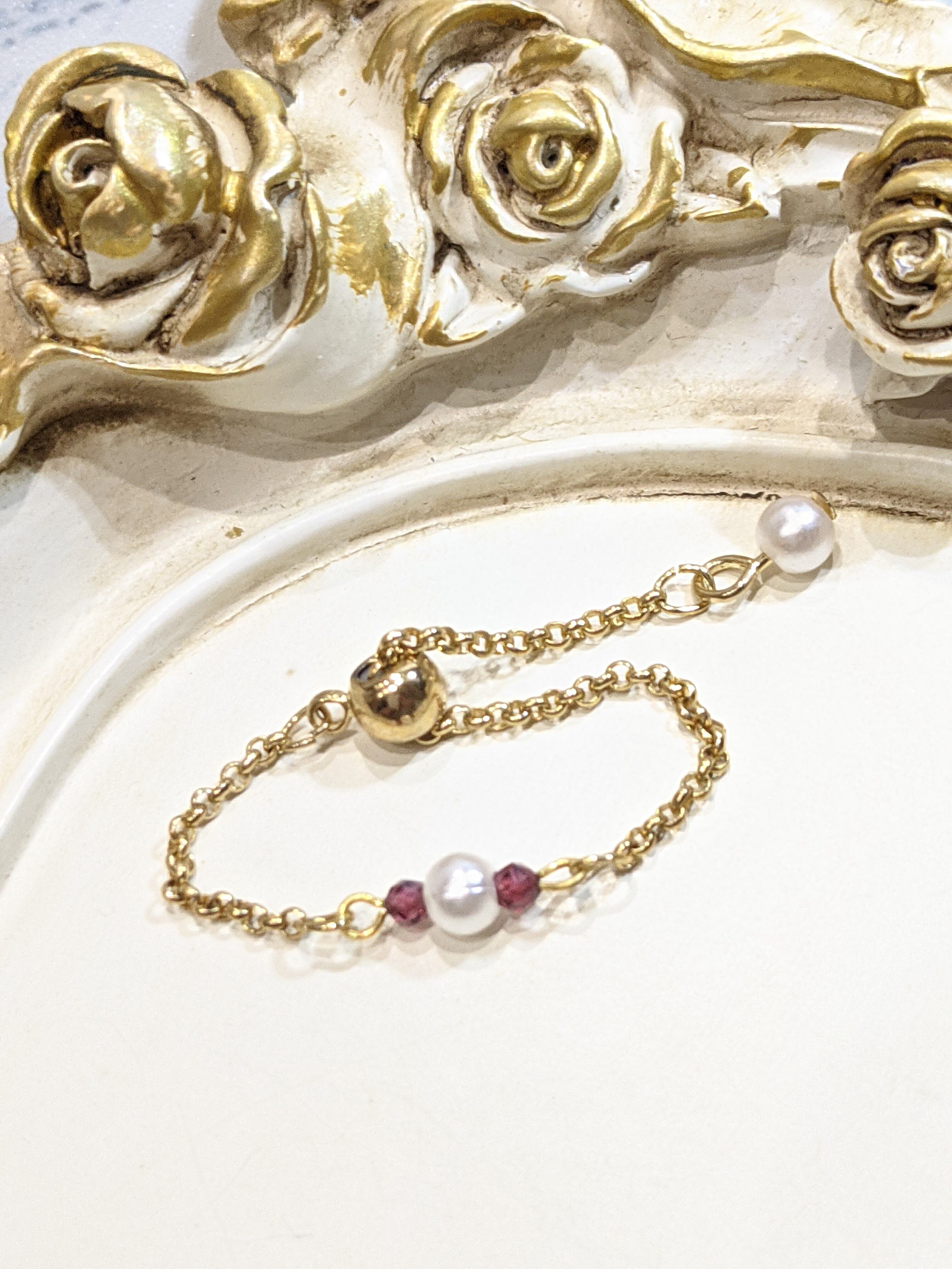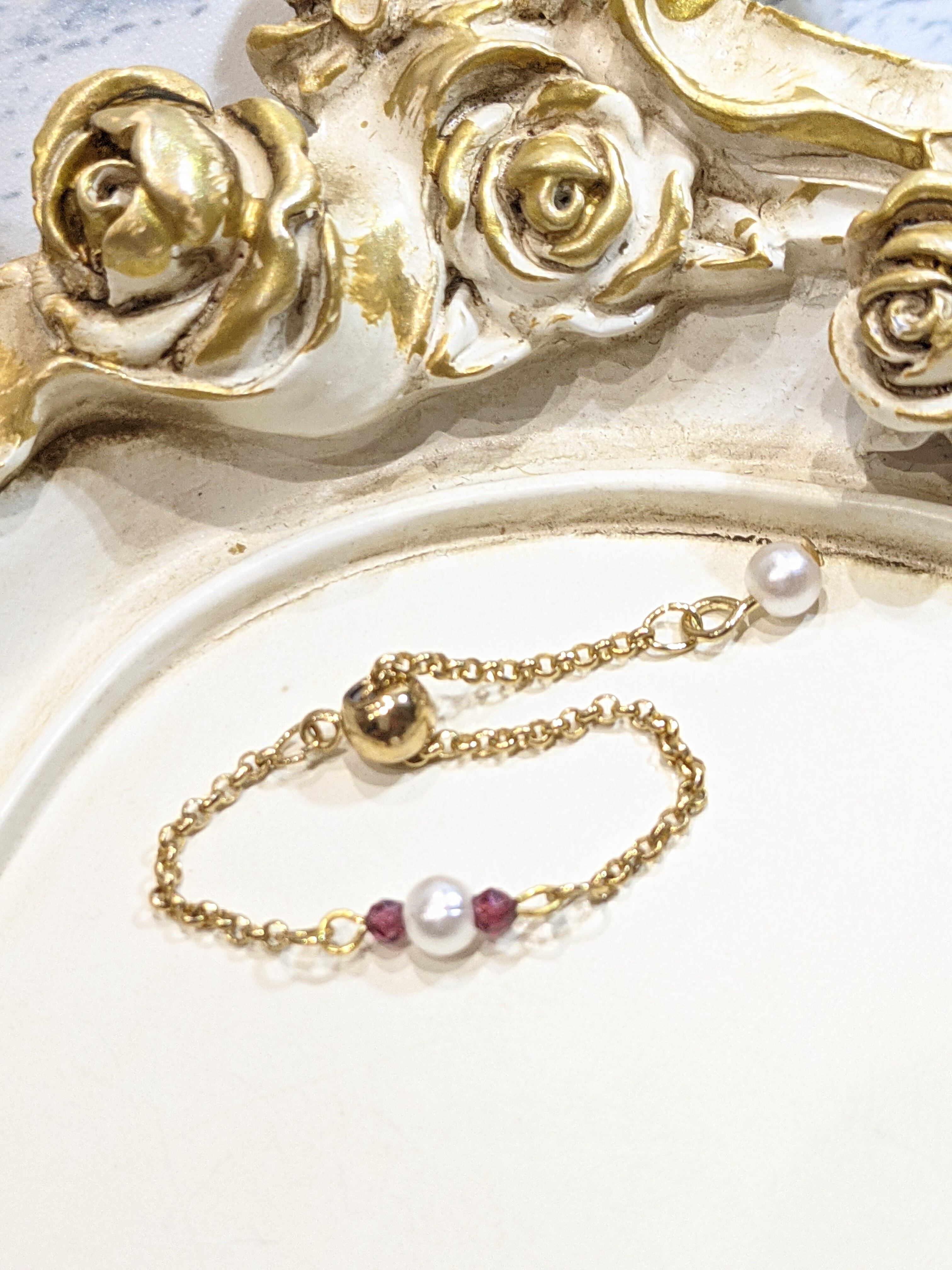 恋の成就 絆を永遠のものに ガーネット チェーンリング ゴールド